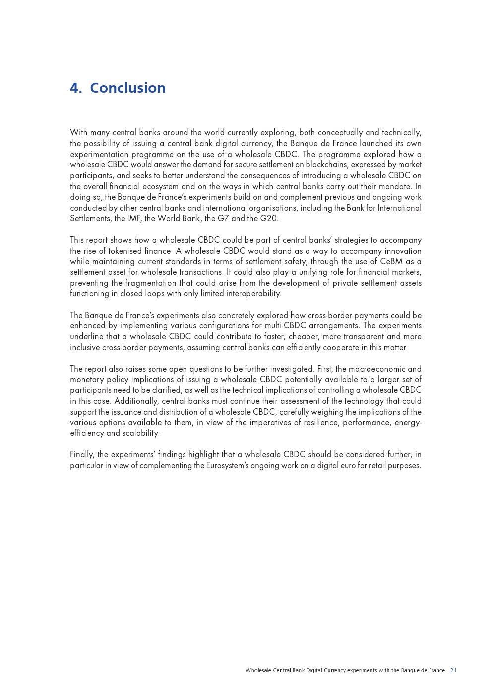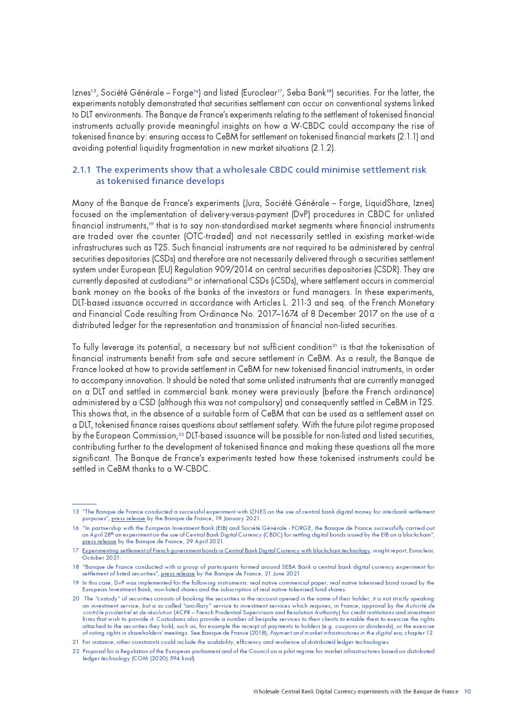 在这种背景下,法兰西银行决定在2020年与市场参与者共同启动一项试验计划,以探索批发CBDC(W-CBDC)的发行和使用。批发CBDC被理解为一种新形式的CeBM,可在分布式账本上实现。实验重点是将CBDC用于批发支付,包括跨境和跨货币支付以及证券结算。