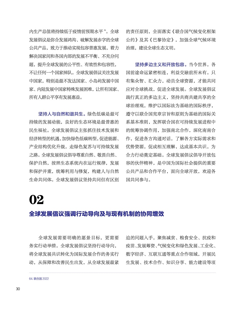 报告构建了面向全球发展的全面分析框架,借鉴吸收了多个联合国机构、其他多边发展机 构和多国学者的优秀研究成果,希望为推动国际发展理论和实践的交流共享、丰富完善人类发展知识宝库作出更大贡献。