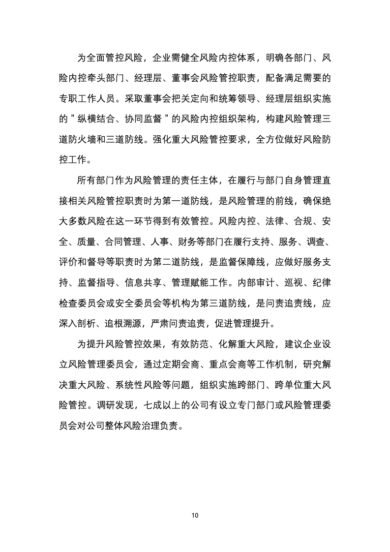 在风险内控组织架构上,七成以上公司有设立专门部门或风险管理委员会对公司整体风险治理负责。
