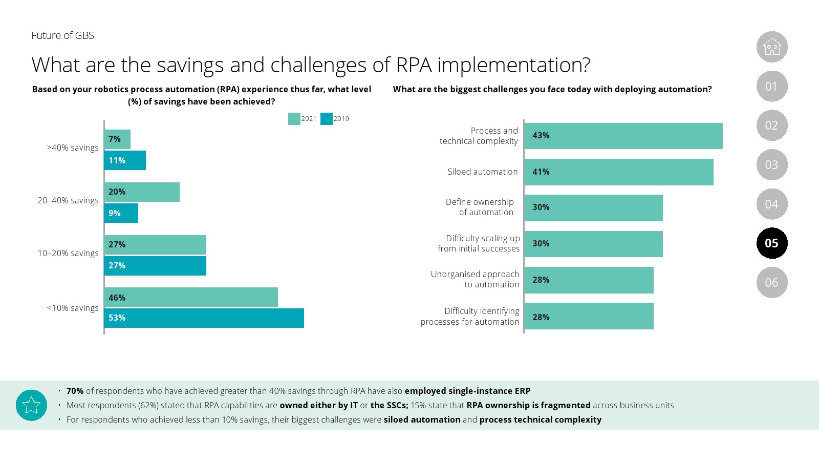 企业开始从 RPA 实施中获得更大的收益,20%的企业成本节省了20%-40%。