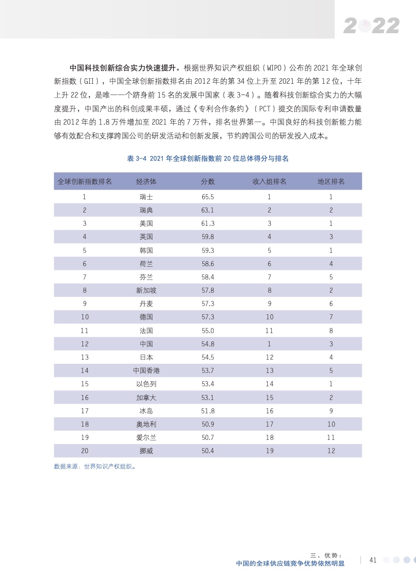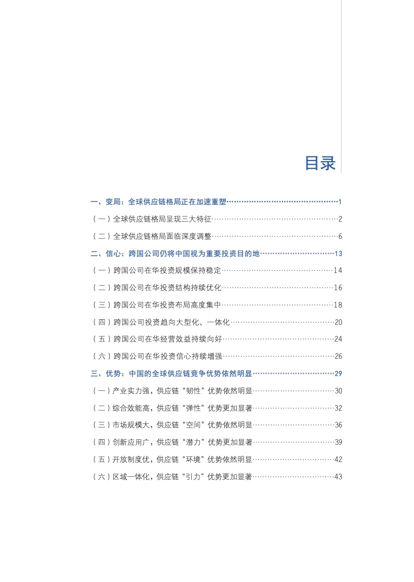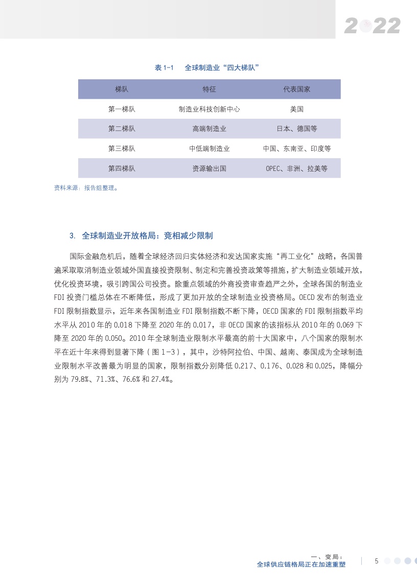 《报告》分为四个篇章,从全球供应链重塑、跨国公司对华投资信心、中国在全球供应链中的优势、未来中国如何适应全球供应链新局面等角度,深刻分析和阐释了新形势下全球供应链表现出来的变化与机遇。报告认为,全球制造业经过多次转移,目前已形成了以中、美、德为核心的三大制造业中心和供应链高度依赖的“四大梯队”分工格局。