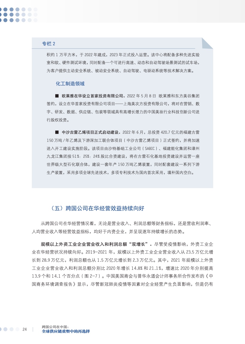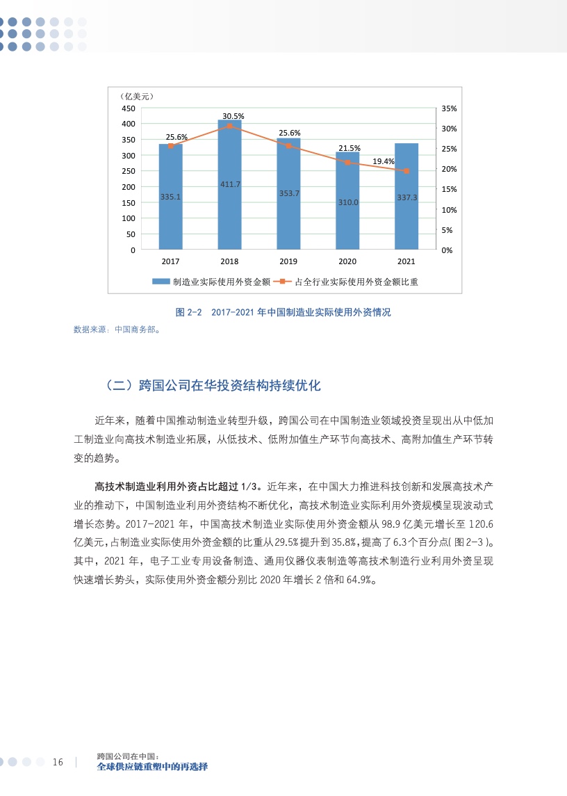 第二,中国仍是跨国公司全球投资的重要目的地。跨国公司在中国制造业领域投资稳中有进,投资增速比全球制造业FDI增速高出1.1个百分点,同时投资结构持续优化,高智能制造业利用外资持续高速增长,占比超过1/3,外资大项目已连续三年保持两位数增长,跨国公司营收和利润实现双增长。