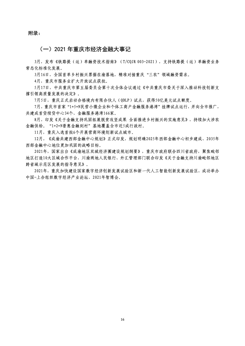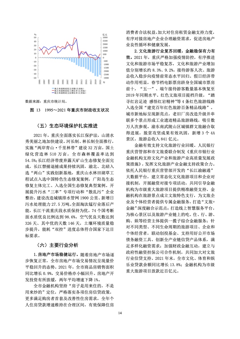 2021 年,重庆市保险业累计为全市社会经济发展提供风险保障1060.8 万亿元,全年保险赔付支出 305.6 亿元,其中,为应对新冠疫情、自然灾害等,财产险赔付支出同比增速达12.8%,较上年进一步提升2.4 个百分点。
