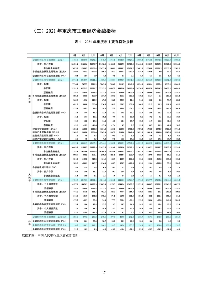 2021 年末,重庆市本外币存款余额 4.59 万亿元,同比增长7.1%。分币种看,外币存款持续受外汇存款利率下降影响,同比增长 5.8%,增速低于上年同期,对本外币存款增速下拉作用较大;人民币存款同比增长7.3%,其中住户存款、企业存款全年新增量分别超过 2000 亿元、400 亿元。