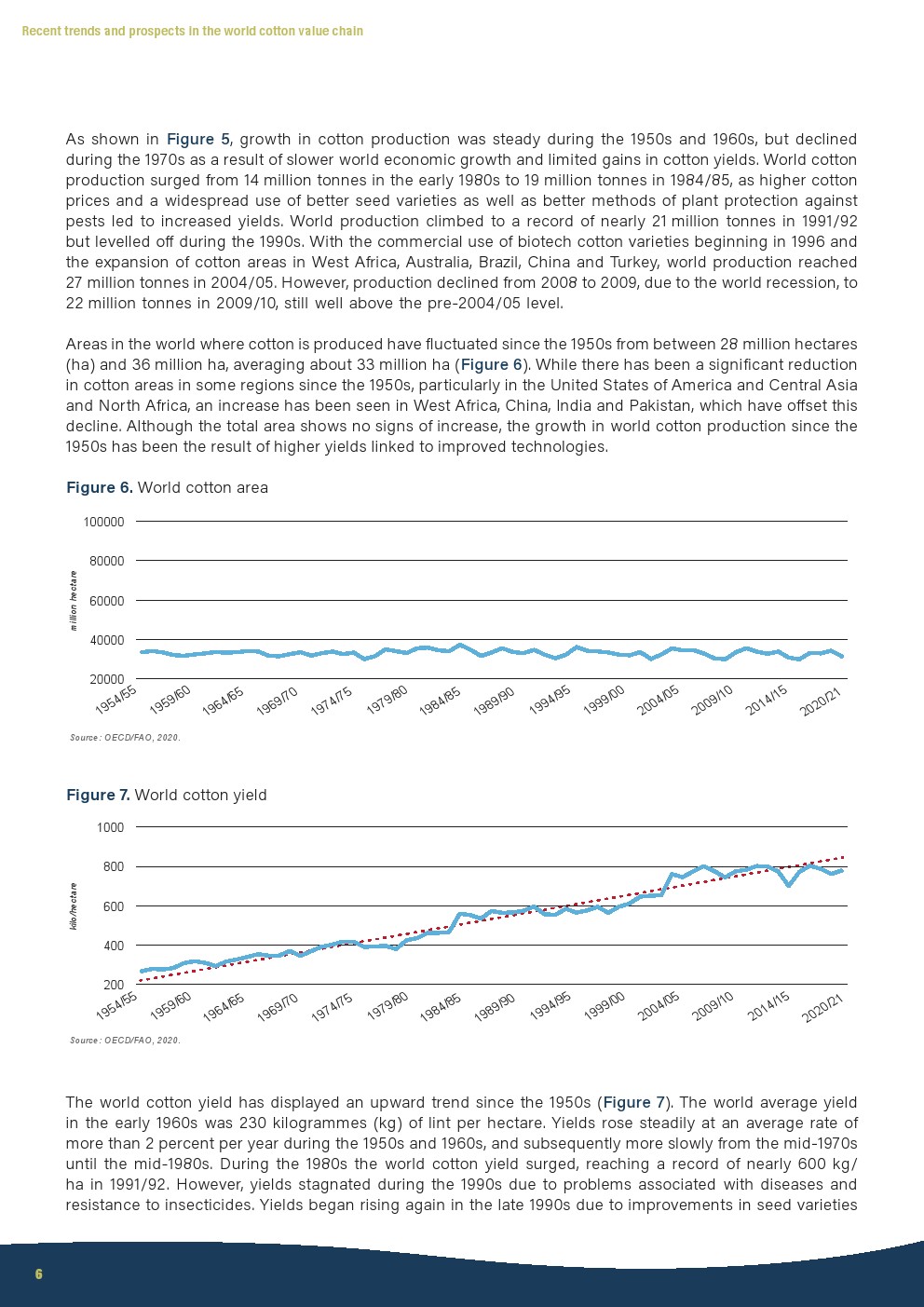 2016/17至2018/19年间,中国棉花产量增长了210公斤,达到1800公斤/公顷,在这期间,中国的单产位居世界第三。因此,2018/19年中国的产量增至600万吨,为世界最高水平。