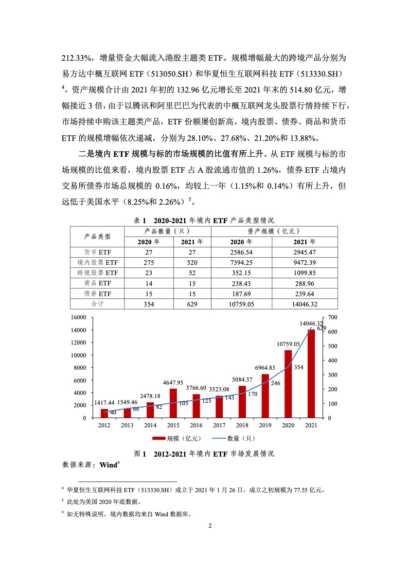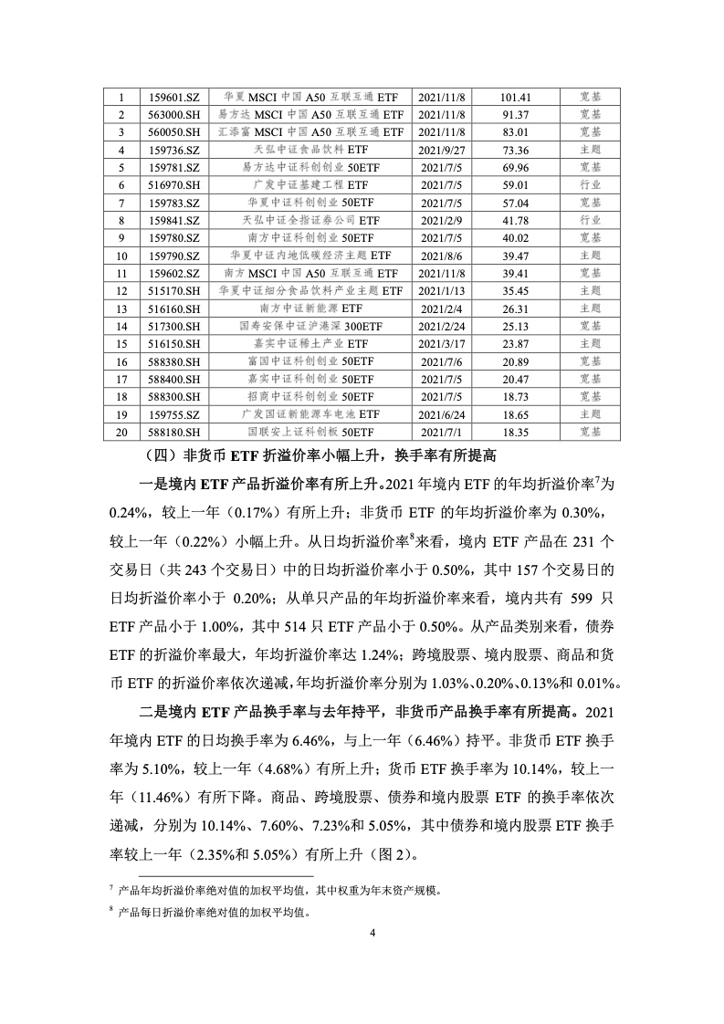 (3)ETF规模增长主要源于新发产品,新发产品多为宽基和主题类ETF,其中深市上市的华夏MSCI中国A50互联互通ETF是2021年境内规模最大的新发产品;