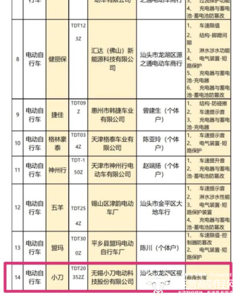 其中,小刀电动车旗下的小刀新能源科技股份有限公司的电动自行车鞍座长度这一安全质量指标不合格。据悉,小刀新能源科技股份有限公司董事长正是小刀电动车副总裁孙继江。