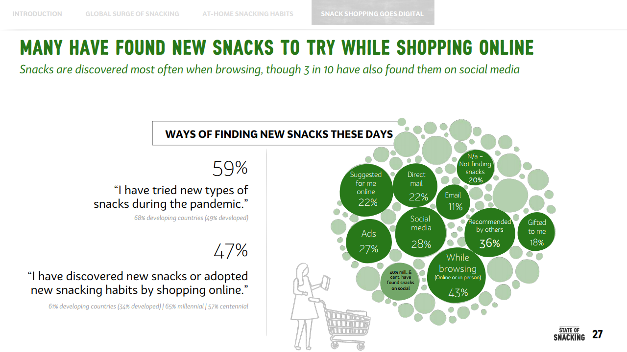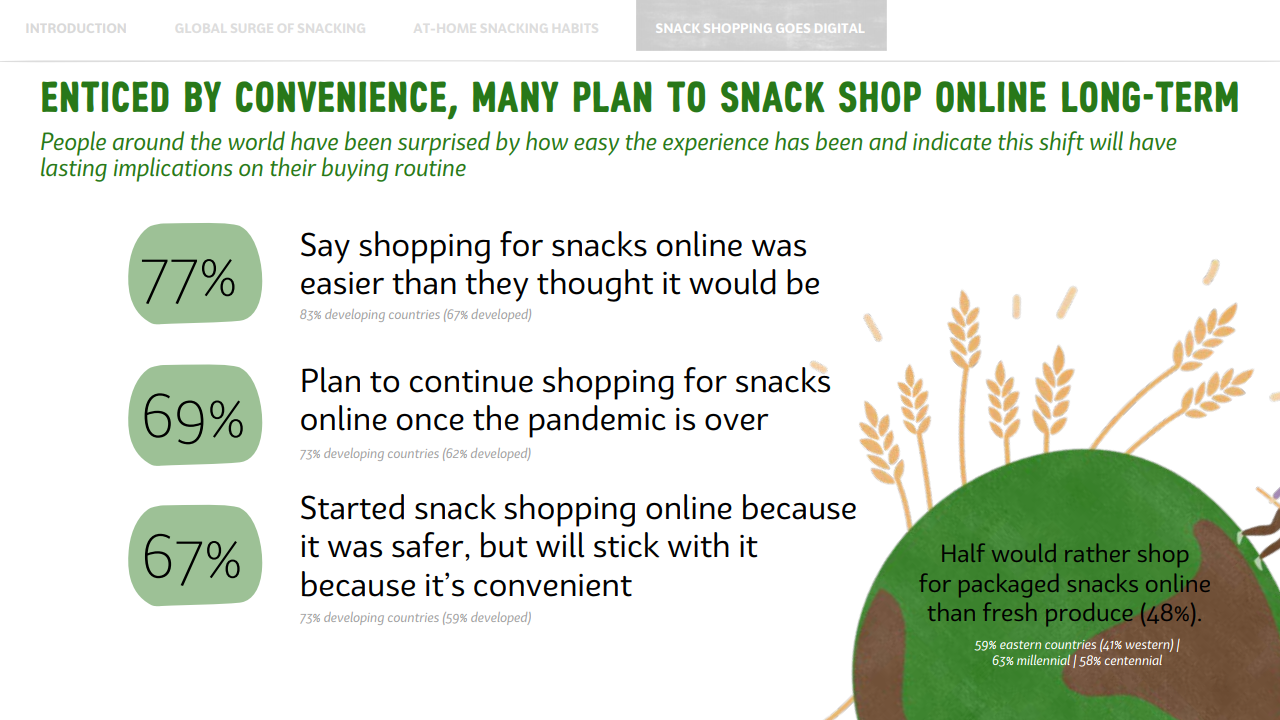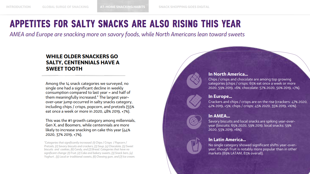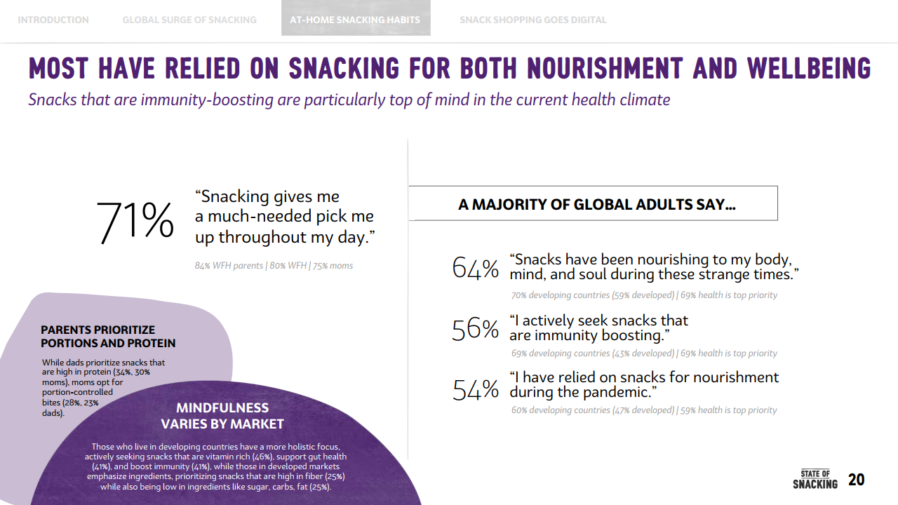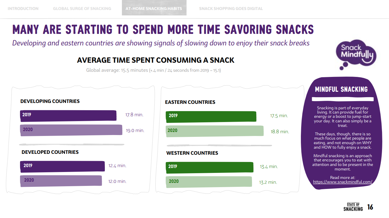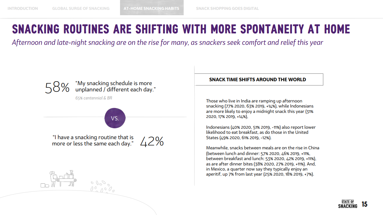 这意味着,疫情期间,年轻消费者养成的零食正餐化的这一习惯,对全球零食消费增长起到了至关重要的作用。
