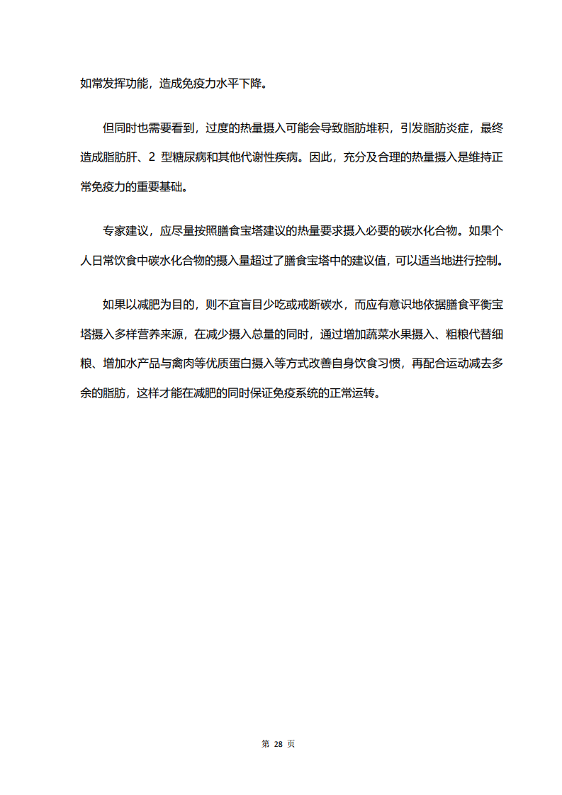 调研数据显示,26.3%的受访者认为“尽量少吃,尤其避免吃碳水化合物”是健康的饮食方式,不了解科学合理的热量摄入是维持免疫系统正常运转的重要基础。