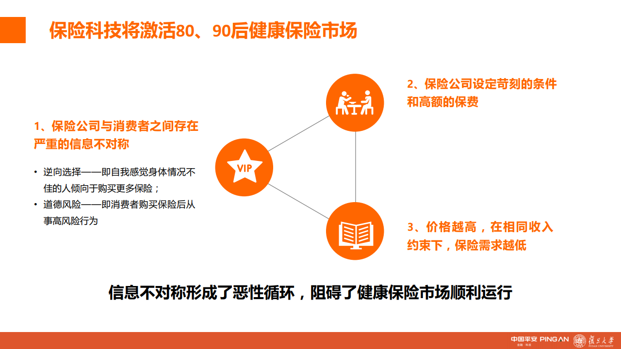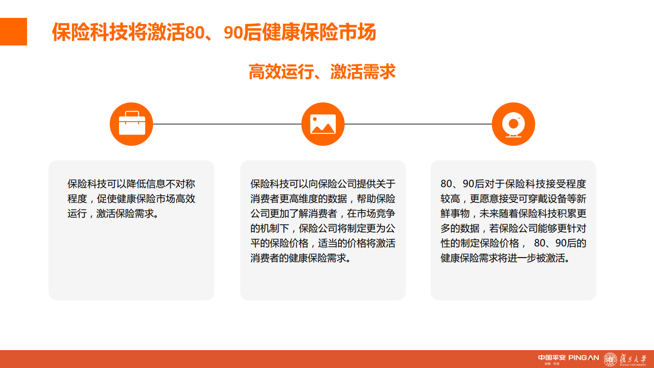 保险科技一方面可以降低信息不对称程度,促使健康保险市场高效运行,实现降本增效;另一方面,保险科技的应用也向保险公司提供了关于消费者更高、更广维度的数据,帮助保险公司了解消费者,从而推出更符合消费者期待的保险产品和服务,进一步激活80、90后的健康保险需求,形成良性循环。