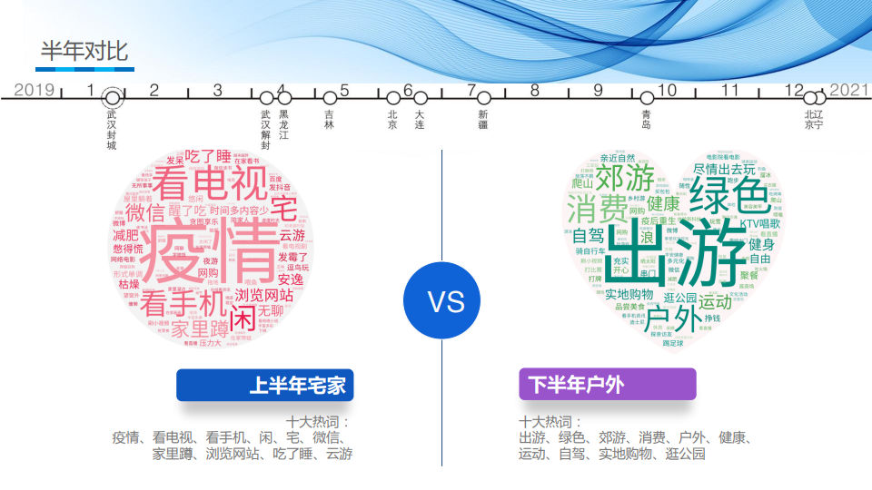 2020年,在新冠疫情防控阻击战中,大量的小微休闲供给主体受到严重冲击,人民群众借助科技力量,烟火不息,休闲需求在狭缝中变通释放。国民休闲维系、守护了人们的健康心理防线,无形中成就了疫情防控取得重大阶段胜利的战略地位。