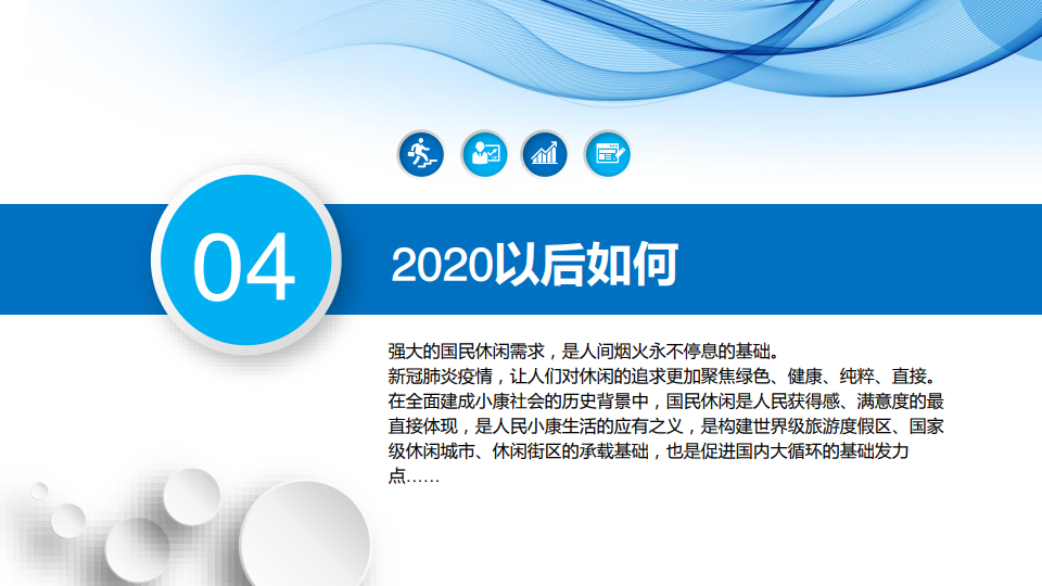 2020以后如何?国民休闲将更加本真和纯粹,会迎来一个整体跃升的发展周期,战略地位将凸显。休闲内容将趋向本真,经此一役,国民休闲再也回不到从前,将更加坚决地成为生活的重要选项。绿色、健康、纯粹、直接,将成为人们对休闲的基本要求。线上线下的互动融通将成为常态方式。休闲时间将主动叠加,与发达国家相比,我国居民年休假时间处于较低水平,未来要真正落实年带薪休息假制度。人们更加愿意利用闲暇时间、甚至主动挤凑时间,来进行休闲活动。休闲空间的边界将更加模糊,走出去,亲近大自然,将成为人们的迫切愿望。人们并不关心休闲和旅游的具体边界,在一个拥有美丽风景的空间里,能够方便获得休闲体验,将成为人们的惯常方式。我们有理由相信,经过2020年的疫情冲击,人们对休闲有了更多期待,产品体系经过了严酷的市场检验,科技手段快速提升了线上线下的融通方式,国民休闲必将迎来一个整体跃升的发展周期。