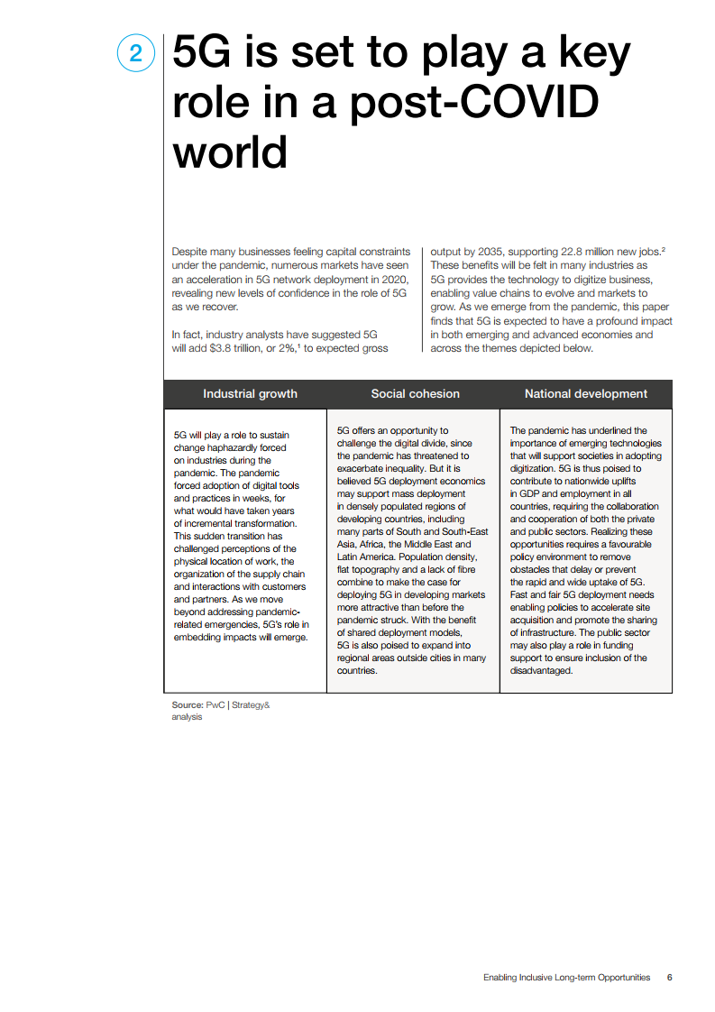COVID-19大流行加速了向数字技术的转变,同时采用数字工具和技能,使我们有更大的灵活性和复原力来应对未来的风险和不确定性。5G在新时代中扮演着至关重要的角色,它连接着数据,这些数据可以比以往任何时候都更好地个性化和预测我们的需求。在我们需要恢复经济增长的时候,这篇《5G展望系列:创造包容性长期机遇》报告概述了可以把握的具体机遇,以确保5G发挥其作为首要赋能技术的作用,造福人类、企业和社会。