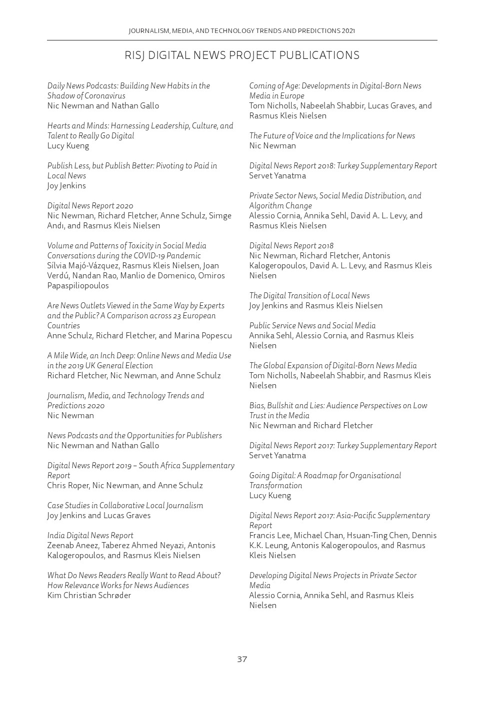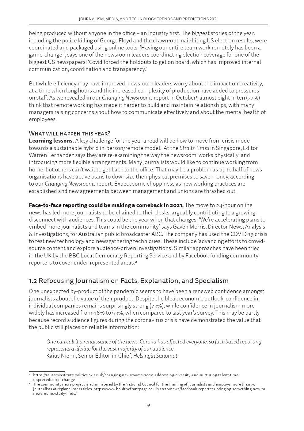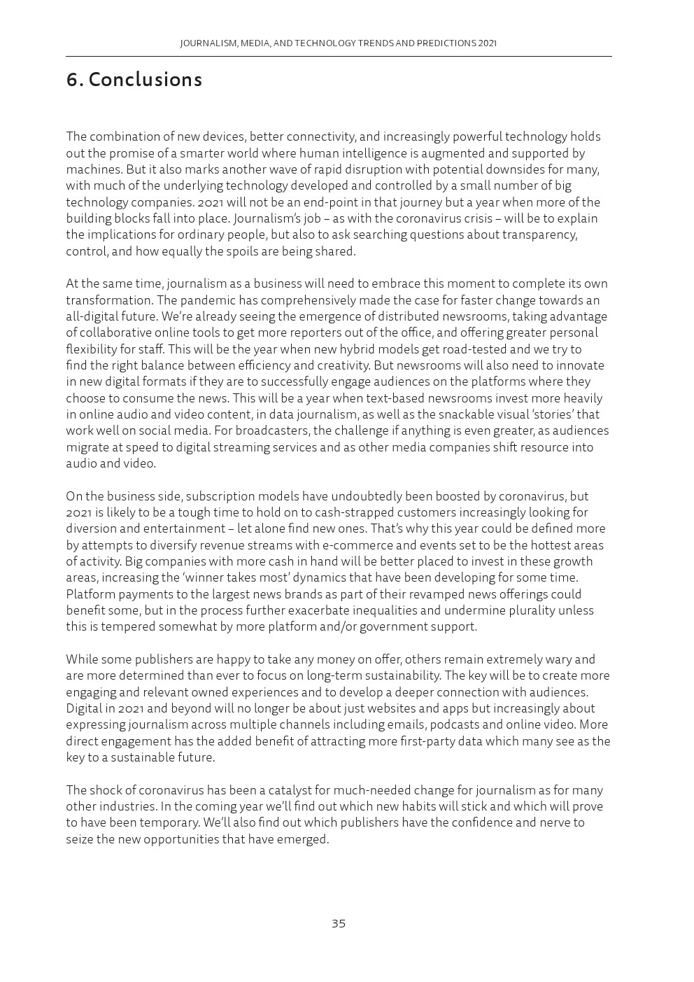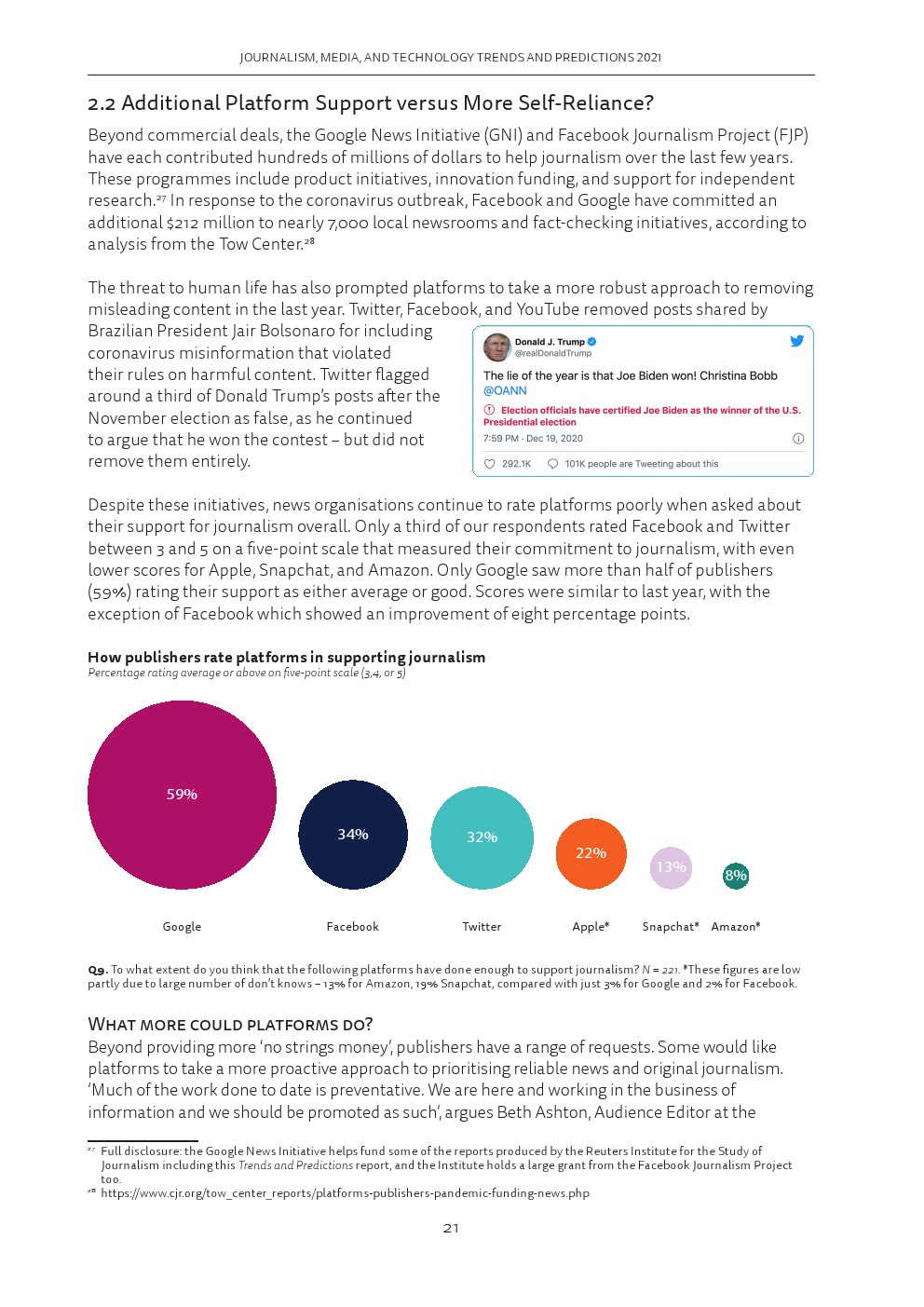 Nic Newman发布了“2021年新闻、媒体和科技趋势报告”,调查了媒体领袖如何看待未来一年: