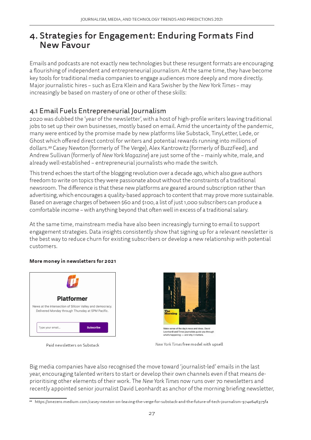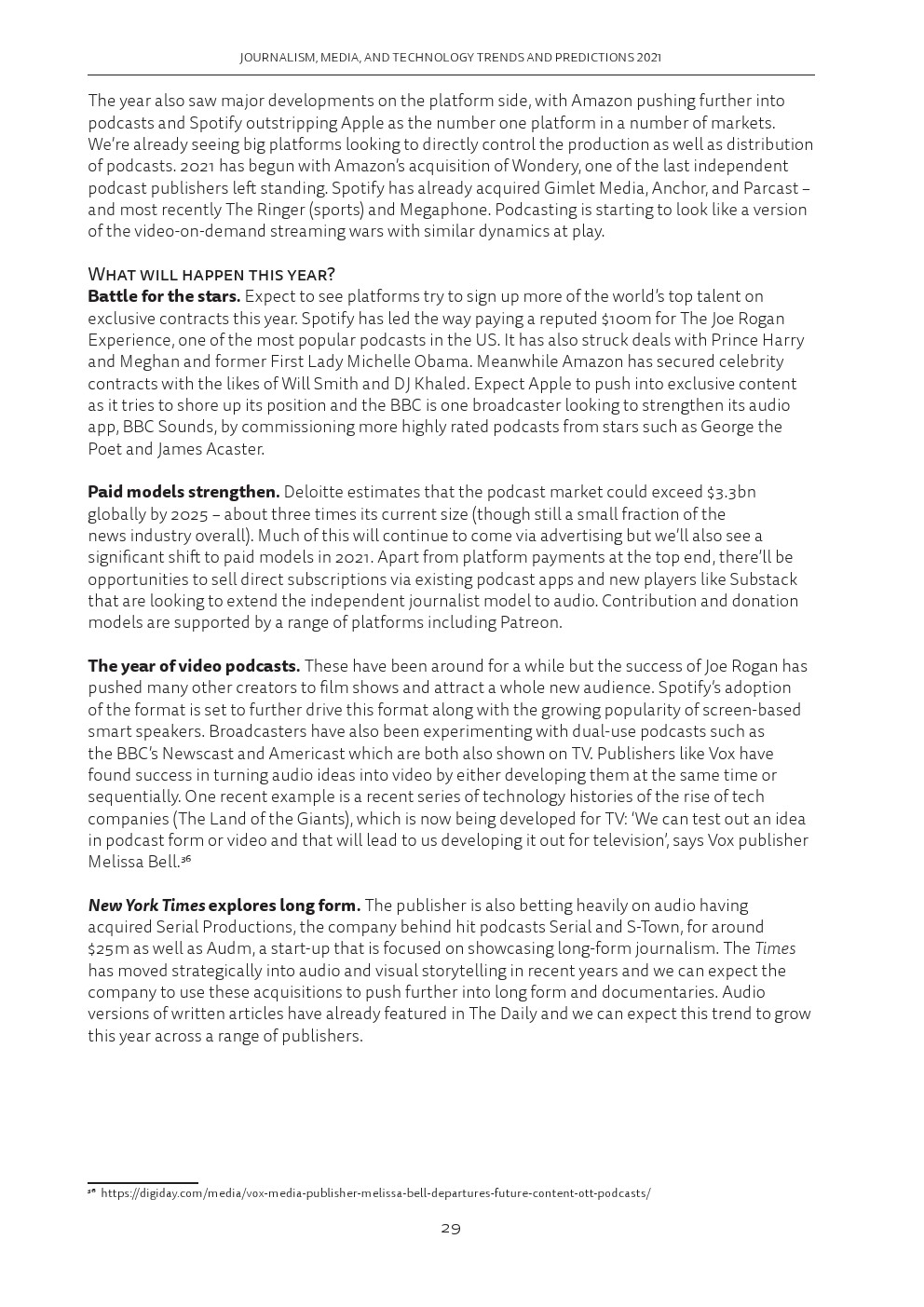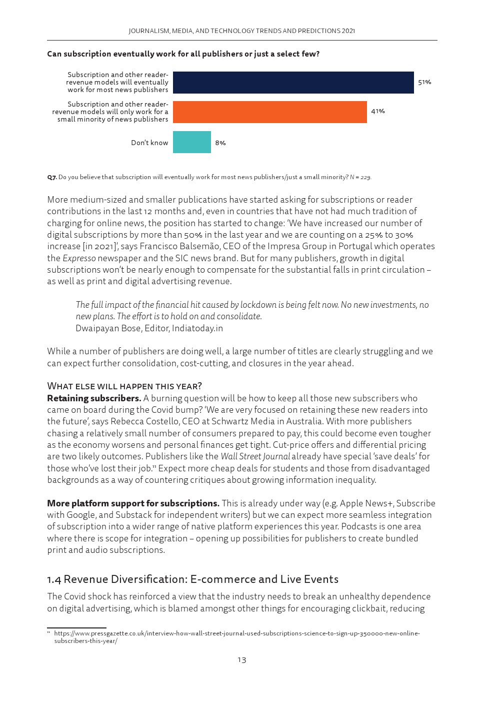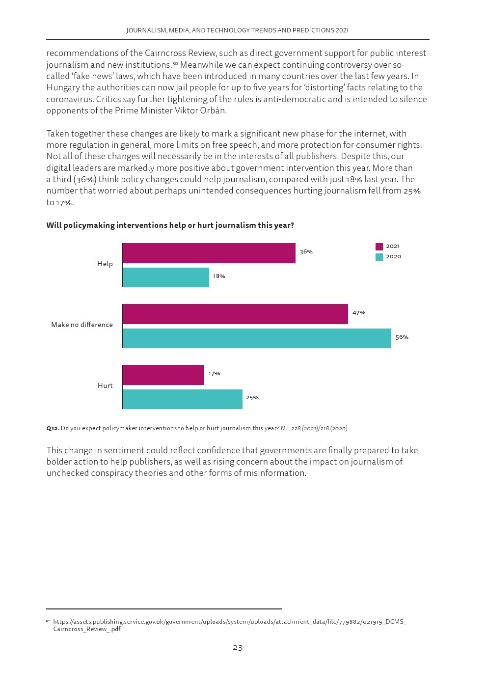 Nic Newman发布了“2021年新闻、媒体和科技趋势报告”,调查了媒体领袖如何看待未来一年: