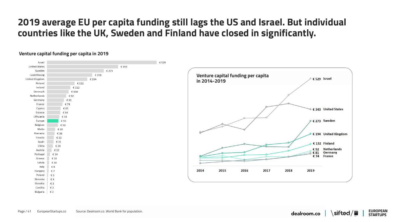 尽管在欧洲大陆筹集了创纪录的投资,但企业仍然依赖外国资本,尤其是随着规模的增长。2019年,欧洲风投筹集了130亿欧元,但向欧洲初创企业获得了380亿欧元投资,差额则来自外国投资者。