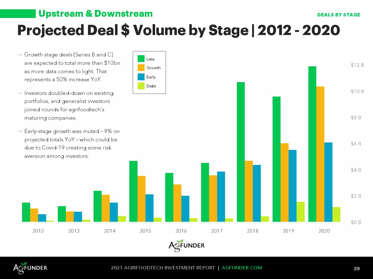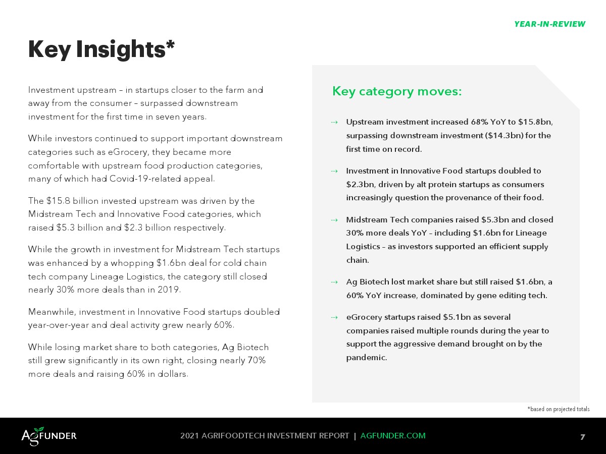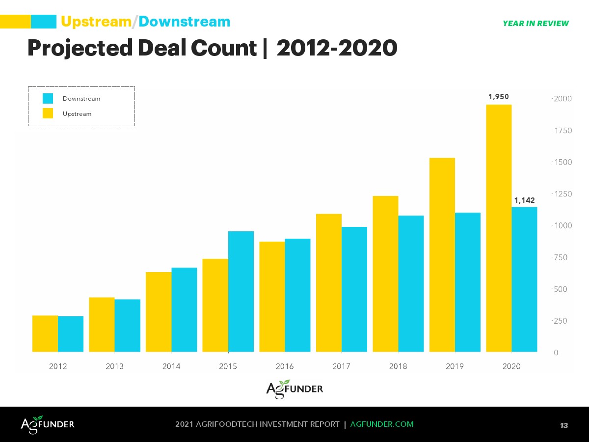 AgFunder发布了“2021年农业食品科技报告”,上游投资七年来首次超过了下游投资。