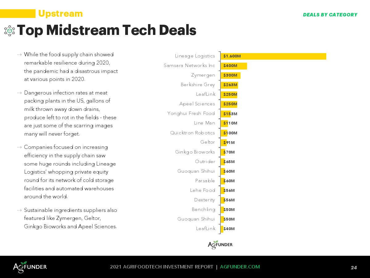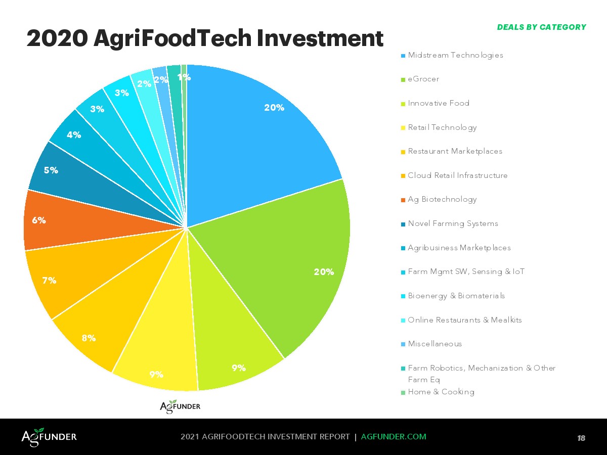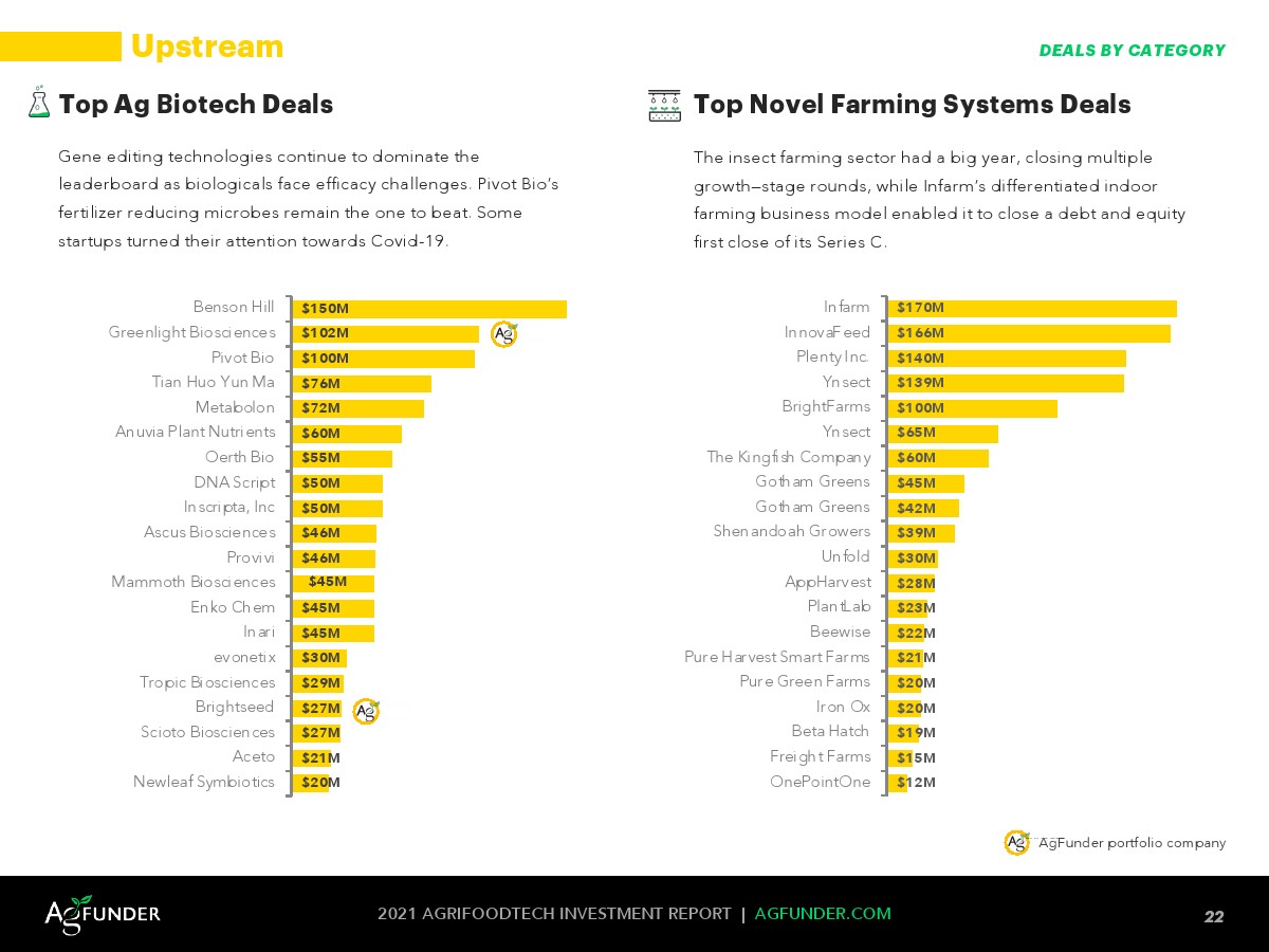 AgFunder发布了“2021年农业食品科技报告”,上游投资七年来首次超过了下游投资。