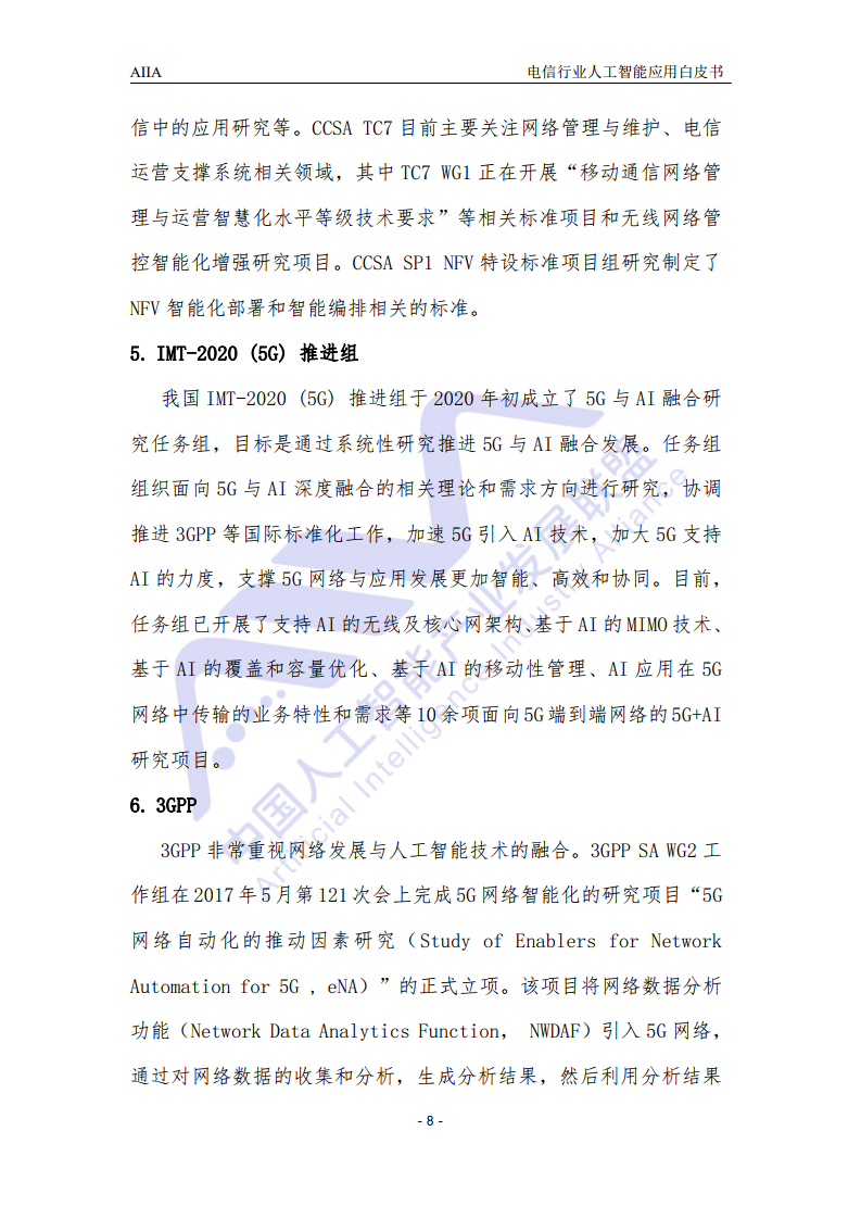 为加快推动人工智能技术在电信行业的应用与融合发展,在AIIA产学研融合与应用工作组指导下,由电信项目组组织,中国信息通信研究院标准与技术研究所,中国移动通信有限公司研究院、中国电信股份有限公司研究院、中国联合网络通信有限公司研究院、华为技术有限公司、中兴通讯股份有限公司、英特尔(中国)有限公司等单位共同编写了《电信行业人工智能应用白皮书》2021版。