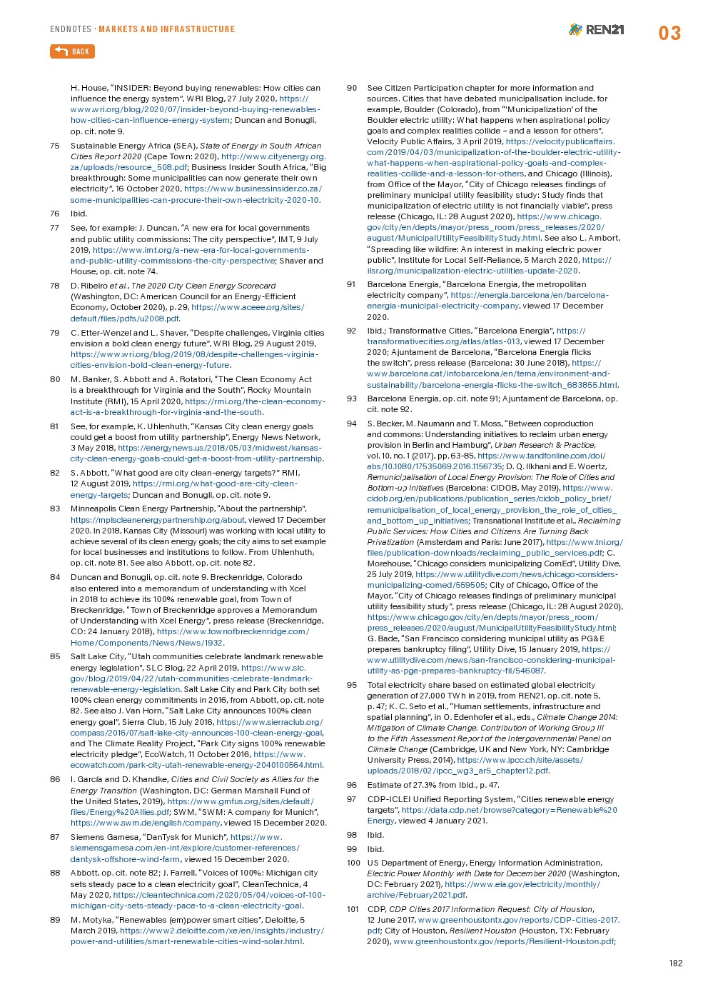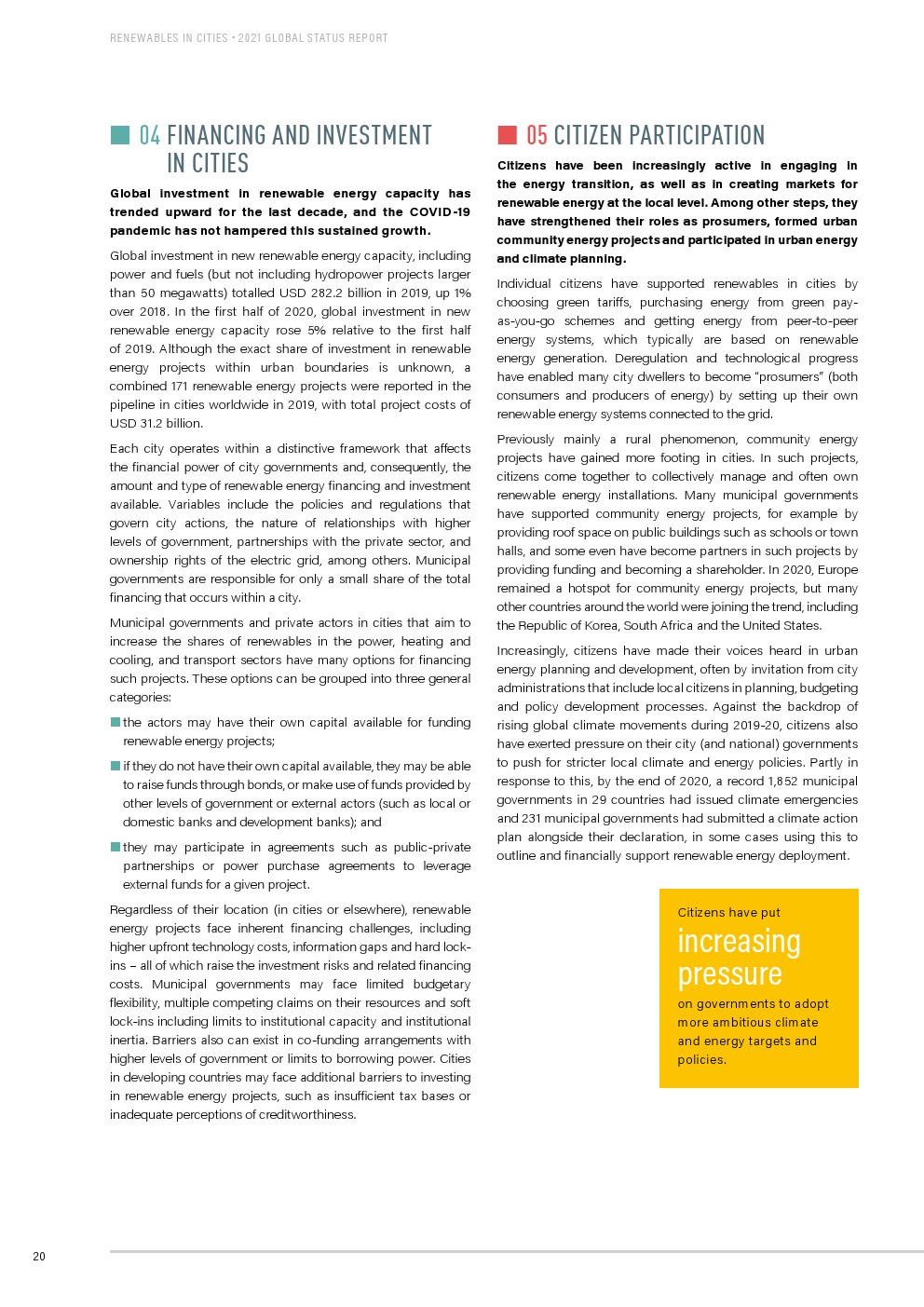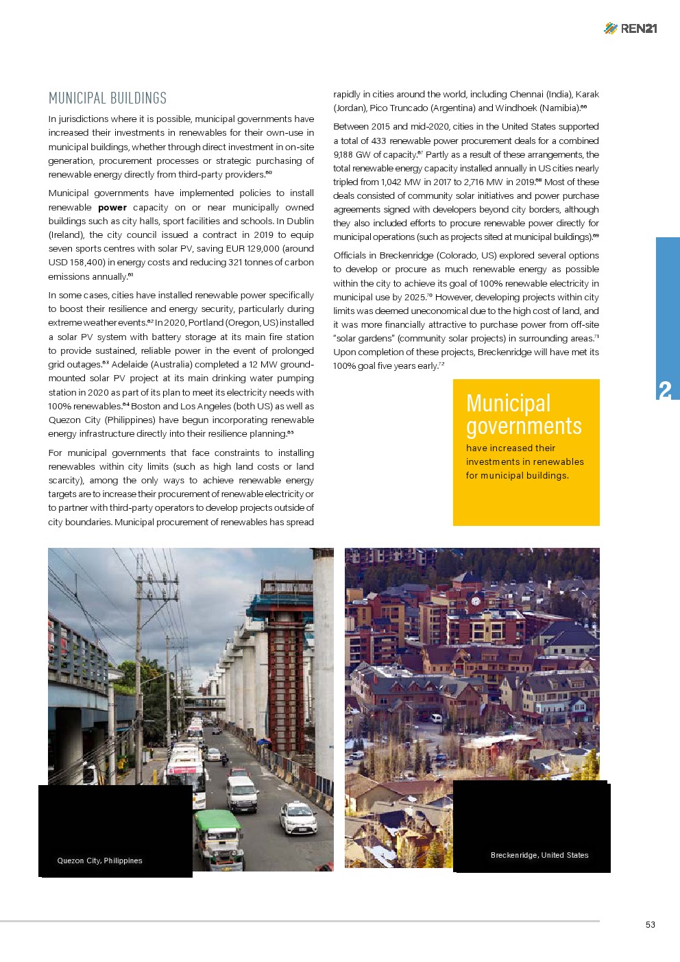 全球城市正在采取行动加速吸收可再生能源。2020年有可再生能源目标和/或政策的城市已经覆盖全球10多亿人。