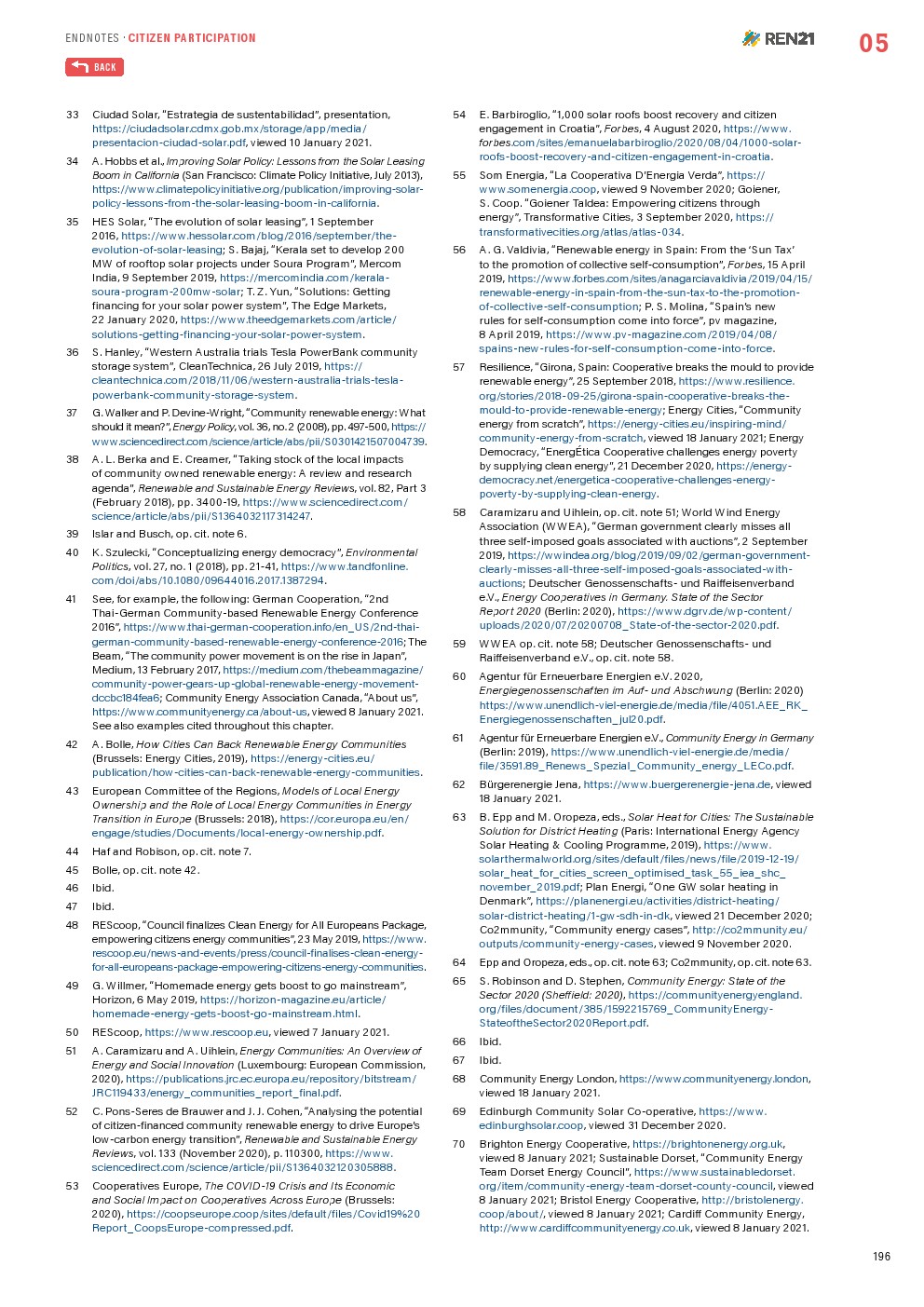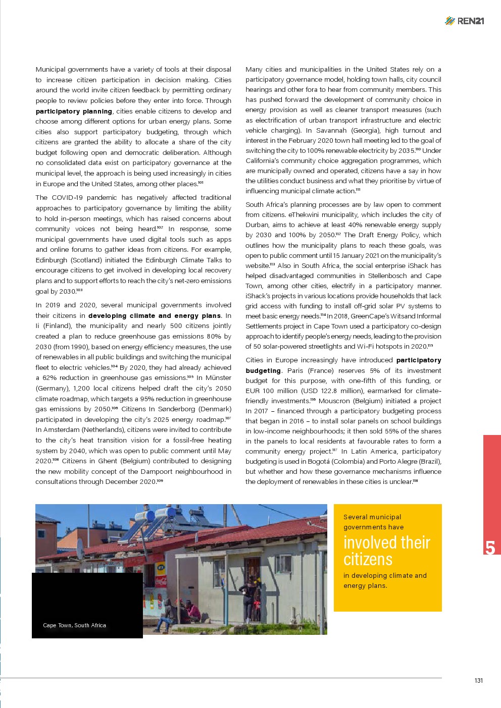 公民积极地参与能源转型,并在地方一级为可再生能源创造市场。除其他步骤外,这些行动加强了作为生产者的角色,形成了城市社区能源项目,并参与了城市能源和气候规划。
