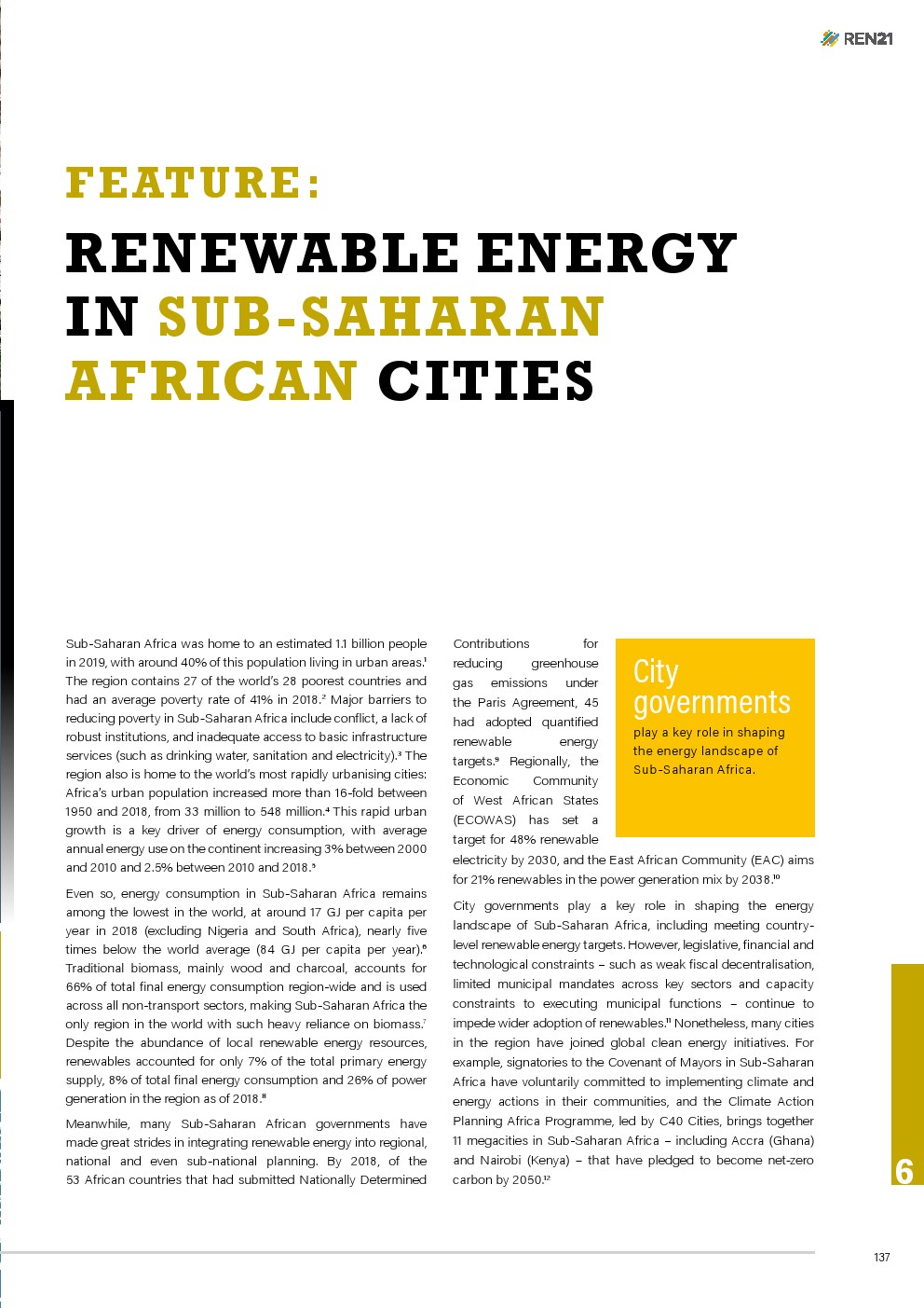 尽管撒哈拉以南非洲城市的可再生能源面临许多挑战,但各国政府都注意到了采取可再生能源行动的呼吁,并加入了全球倡议,共同推动可再生能源的部署和使用。