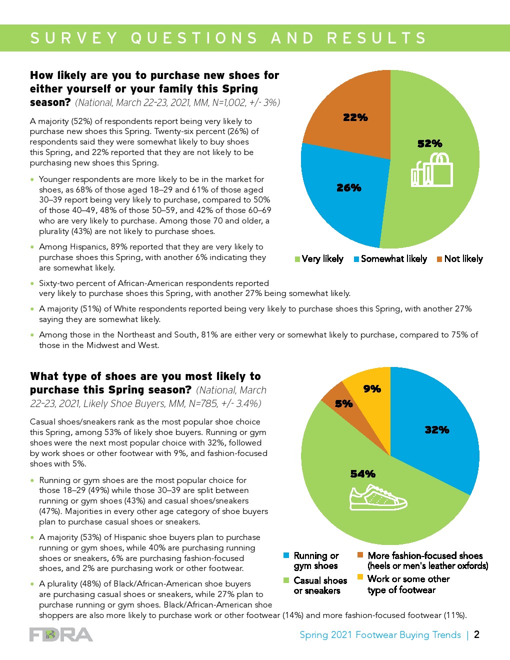大多数受访者(52%)表示今年春天很可能会购买新鞋。26%的受访者今年可能会买鞋子,22%的受访者表示今年春天不太可能买新鞋子。