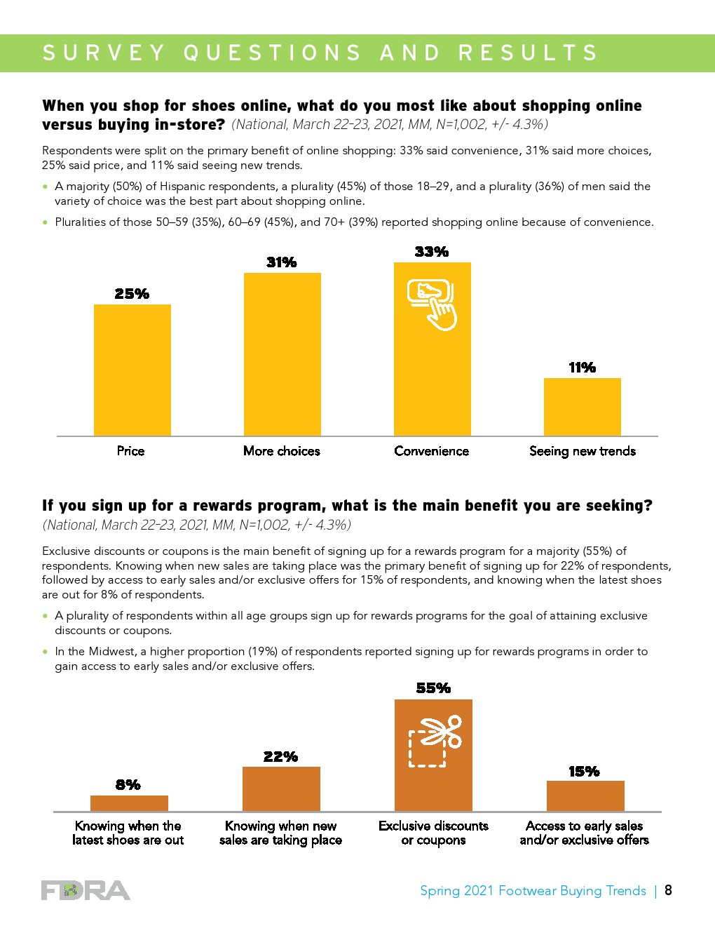 多数人计划使用亚马逊(31%),28%的受访者访问鞋品牌网站。19%的消费者将访问Zappos或Shoes.com等鞋类网站,14%的人计划访问Nordstrom或Footlocker等零售商网站。