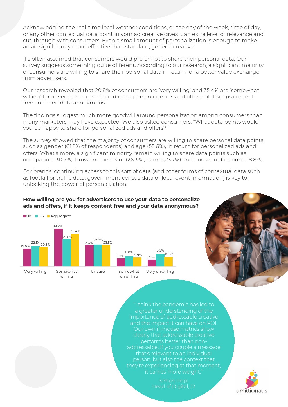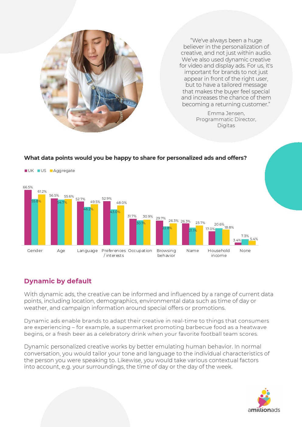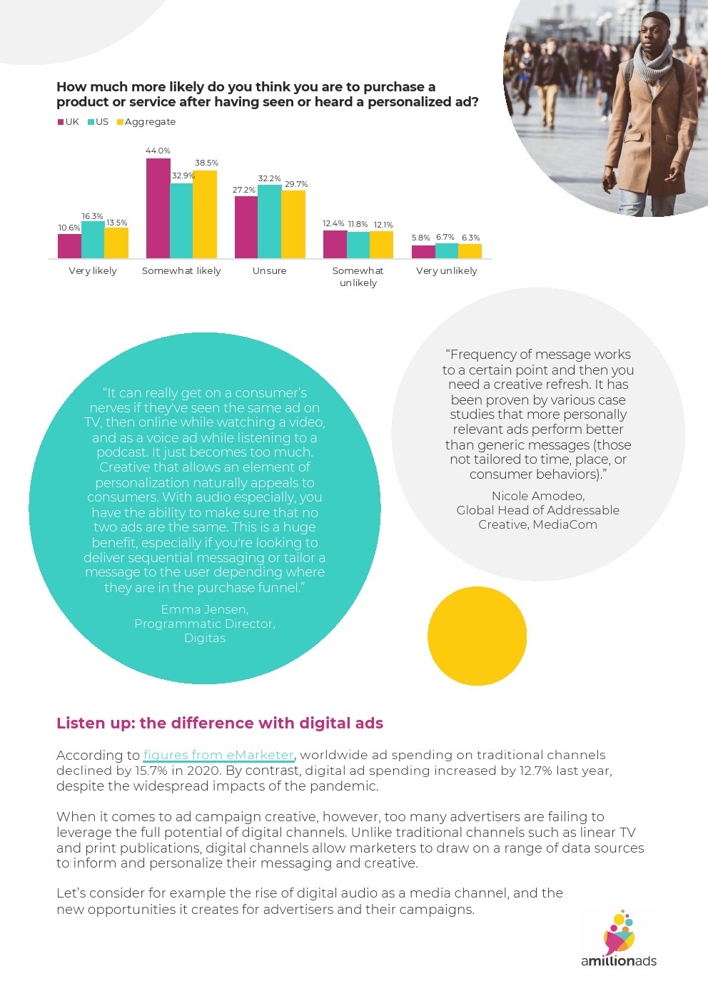 A Million Ads的研究表明,超过一半(51.9%)的消费者在看到或听到个性化广告后更有可能购买产品或服务。