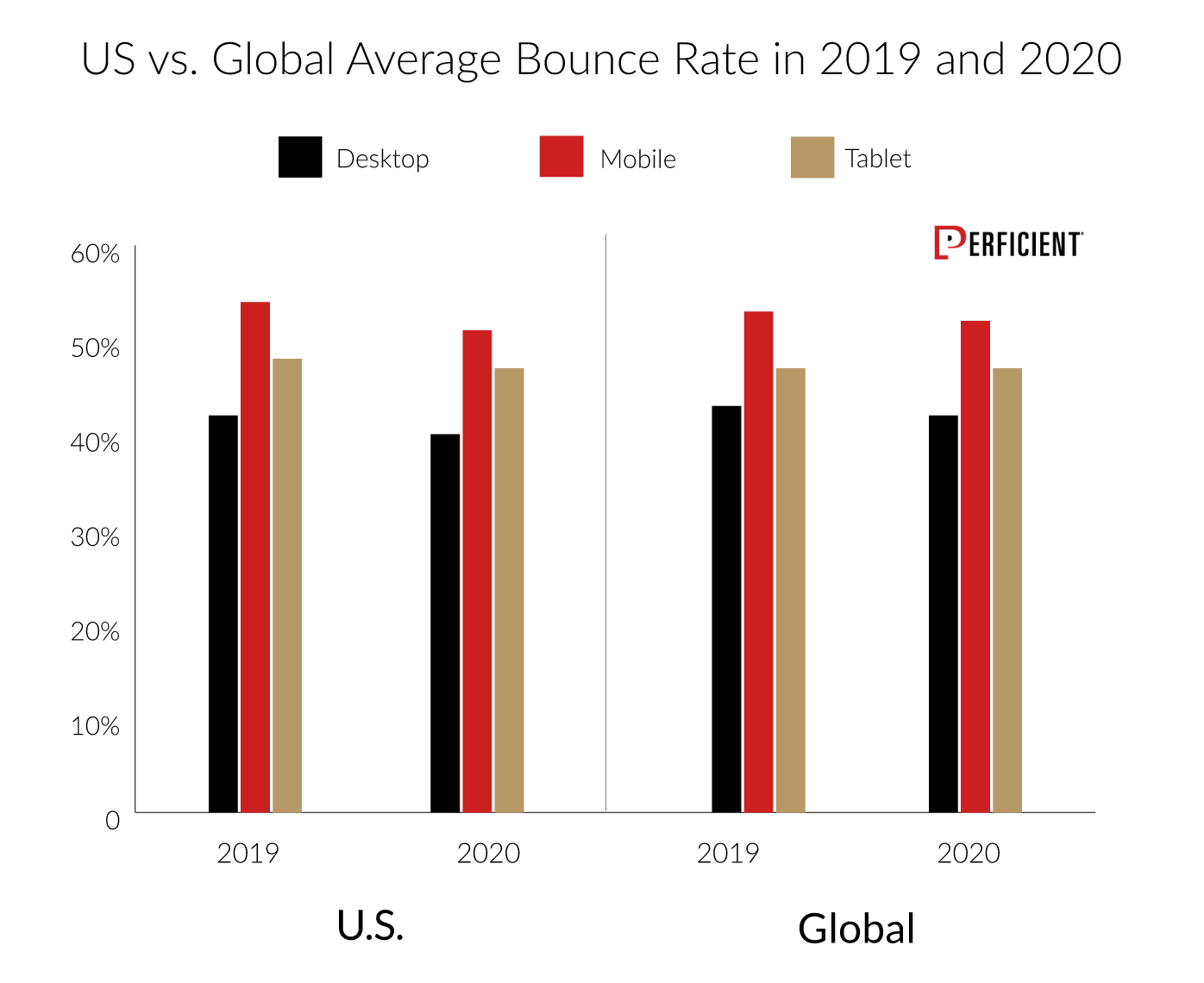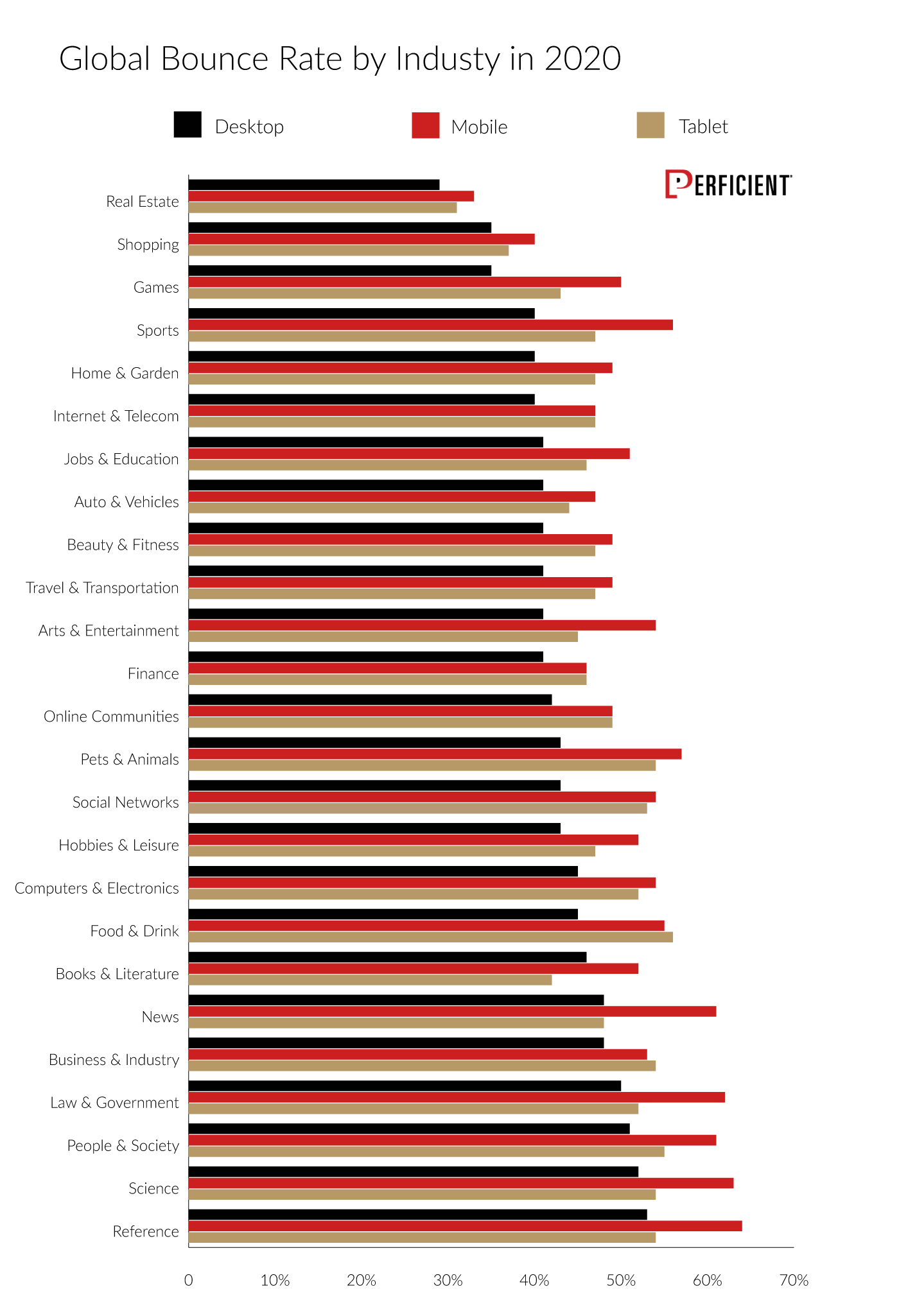 在所有行业中,移动设备的跳出率都是最高的,除了食品和饮料行业。