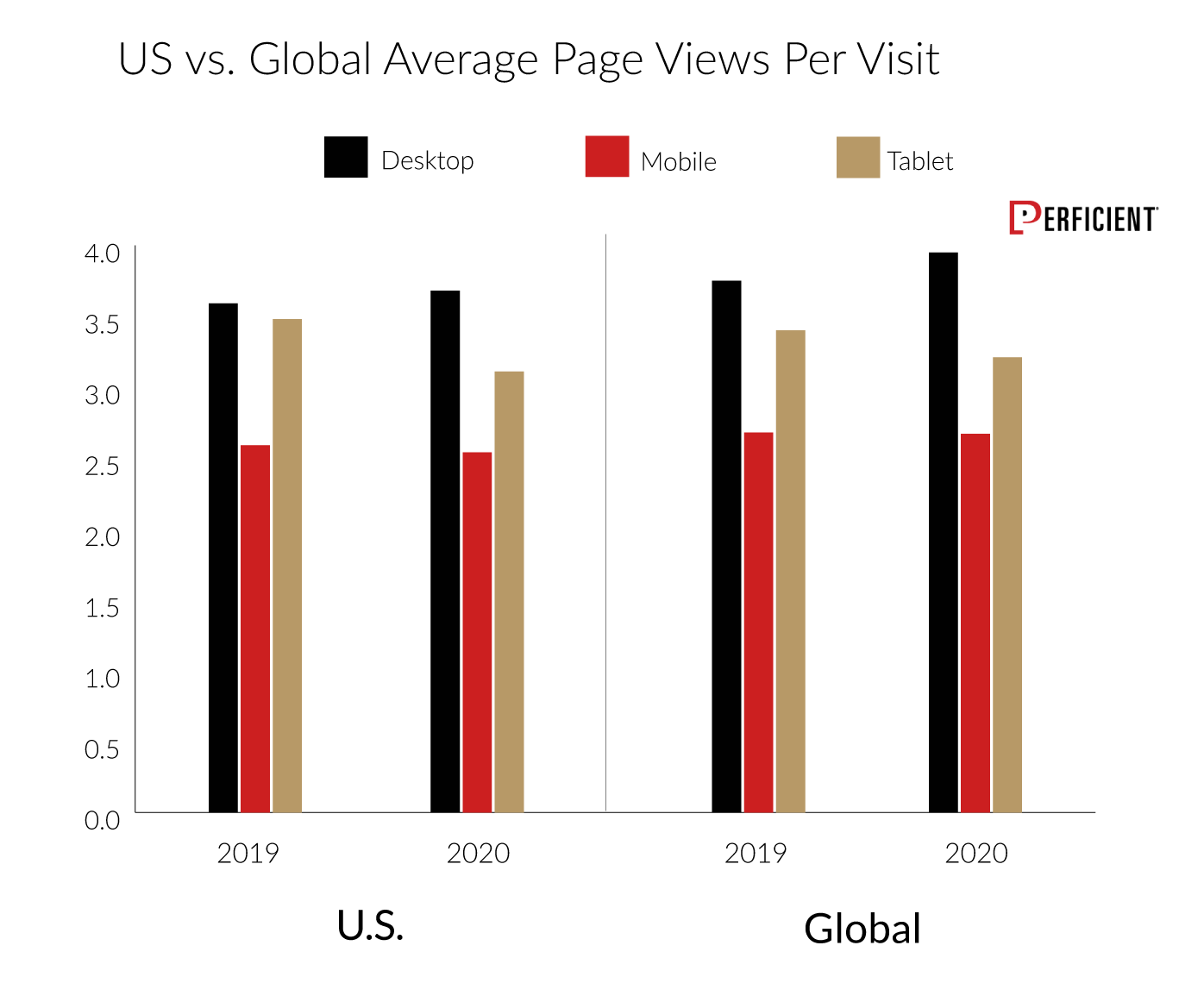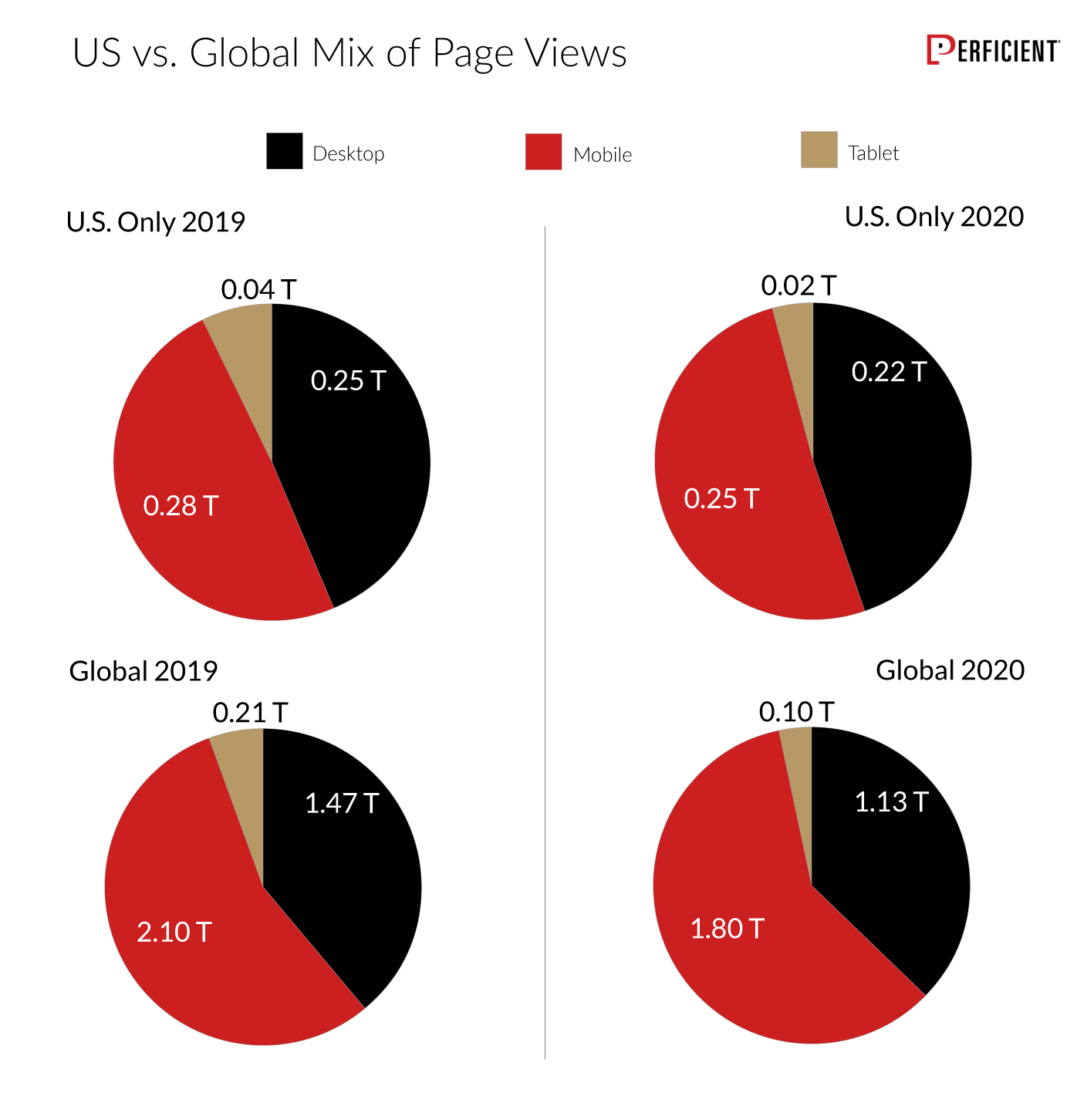 在全球范围内,2020年68.1%的网站访问量来自移动设备,而2019年为63.3%。台式机占访问量的28.9%,平板电脑占3.1%。但是,台式机仍然非常重要,因为它占美国网站访问时长的53.3%,在全球占访问时长的46.4%。