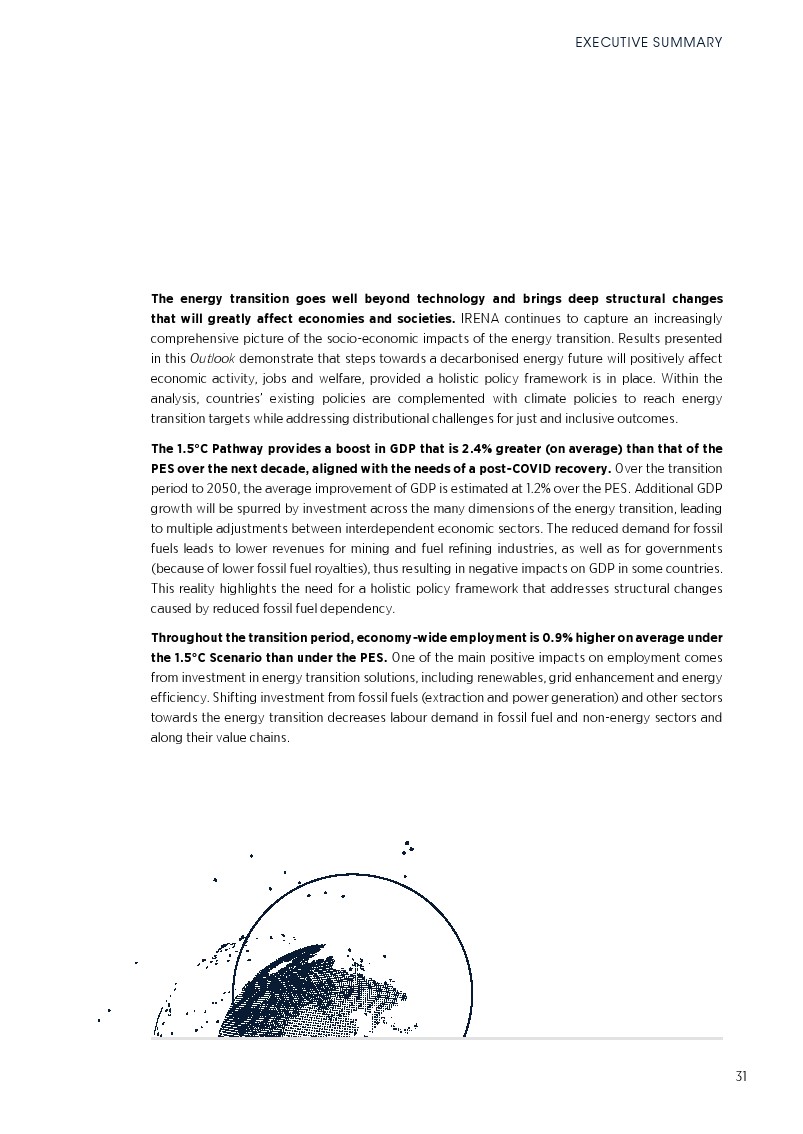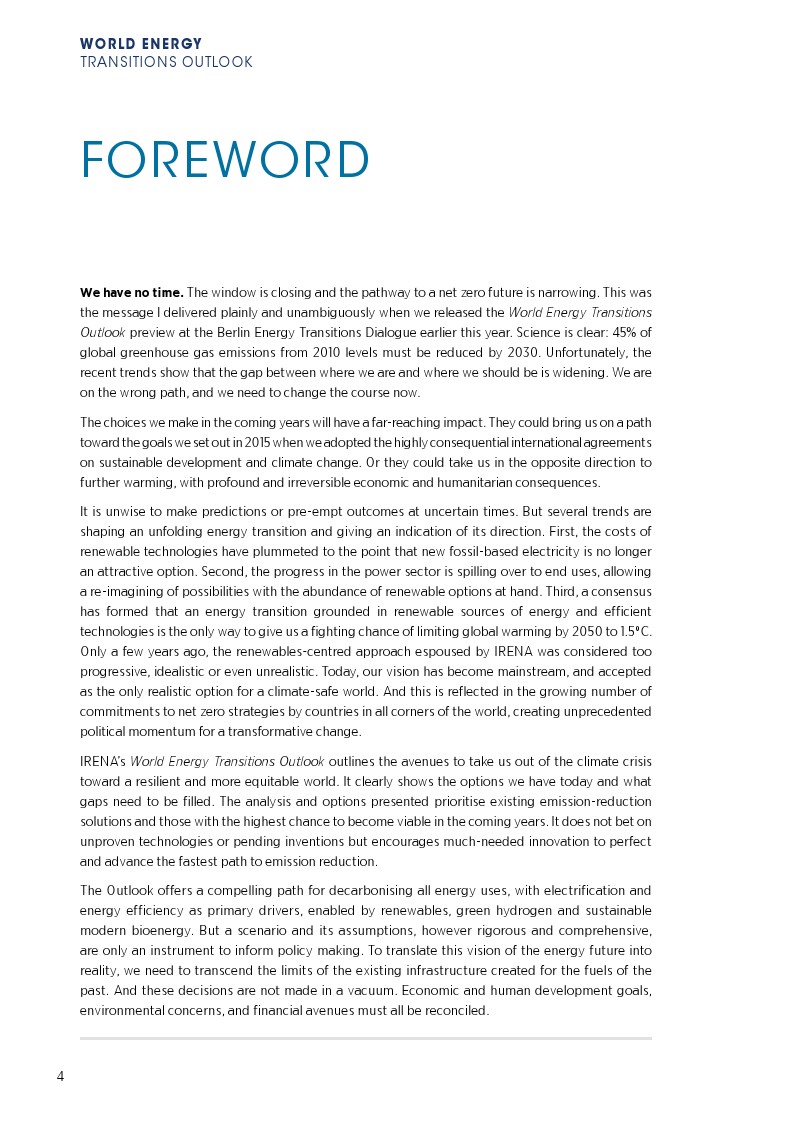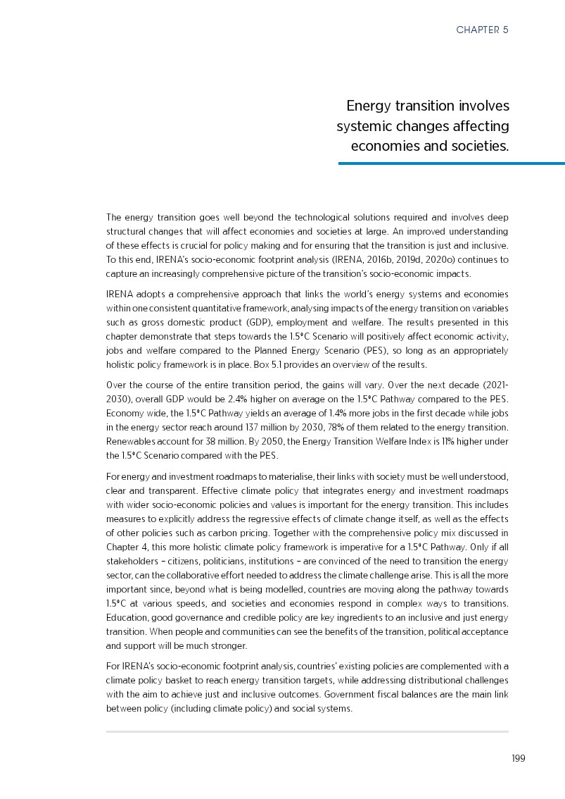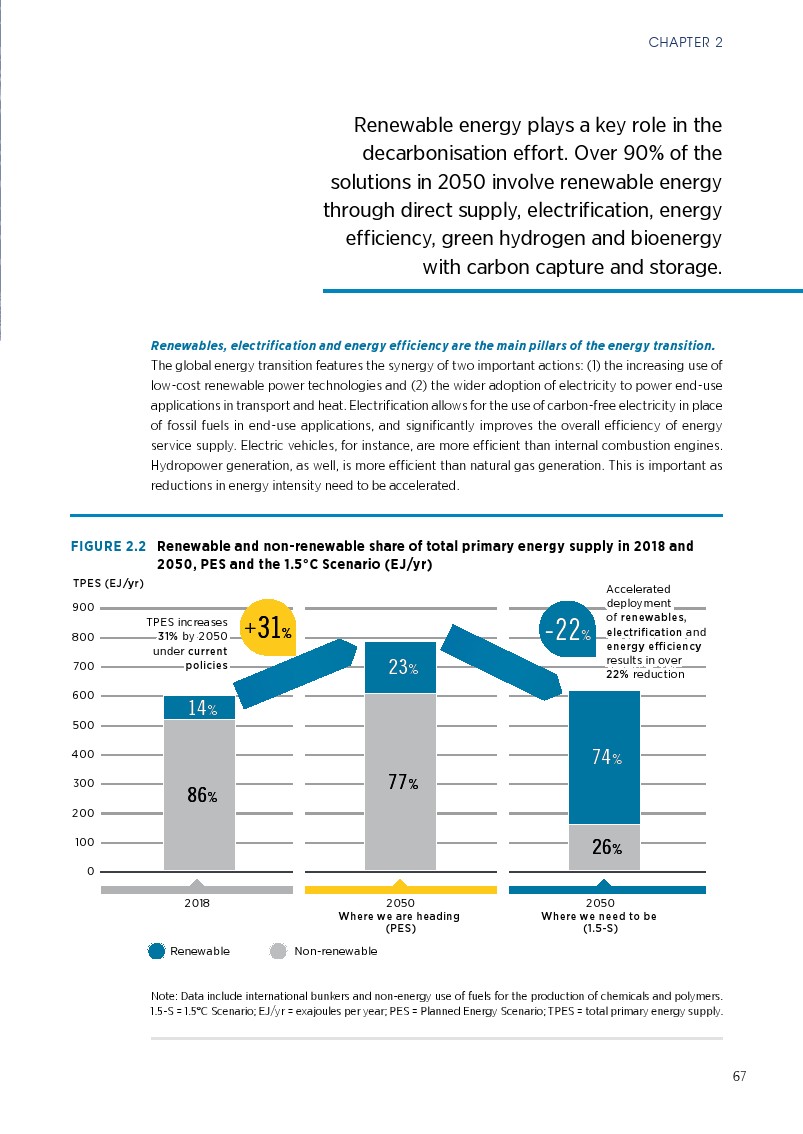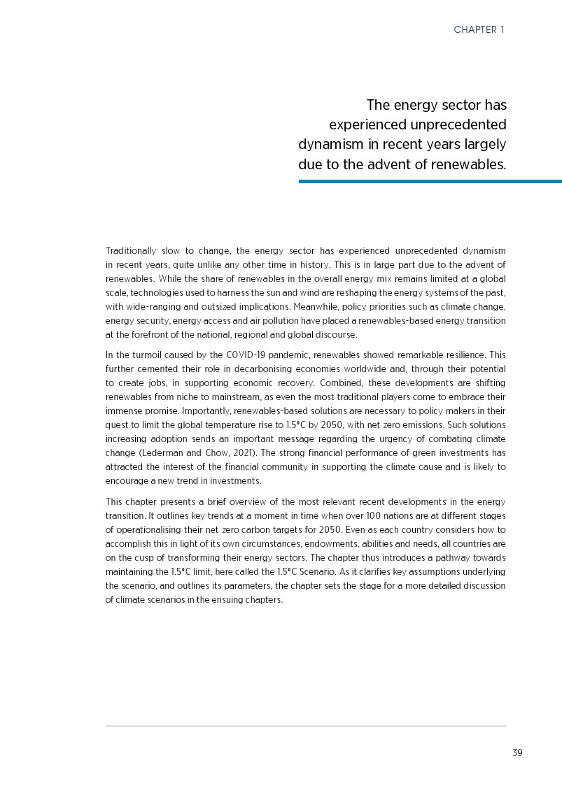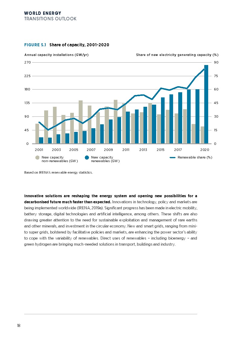 已经形成的共识是,以可再生能源和技术为基础的能源转型能够提高效率,是让我们有机会到 2050 年将全球变暖限制在 1.5°C 的唯一途径。就在几年前,IRENA所倡导的可再生能源方法还被认为是理想主义的。现在,即使是一些最保守的能源参与者也意识到这是一个气候安全世界的唯一现实的选择。这种深刻而普遍的观念转变源于不可否认的证据,包括十多年来重塑能源行业的技术、政策和市场趋势。