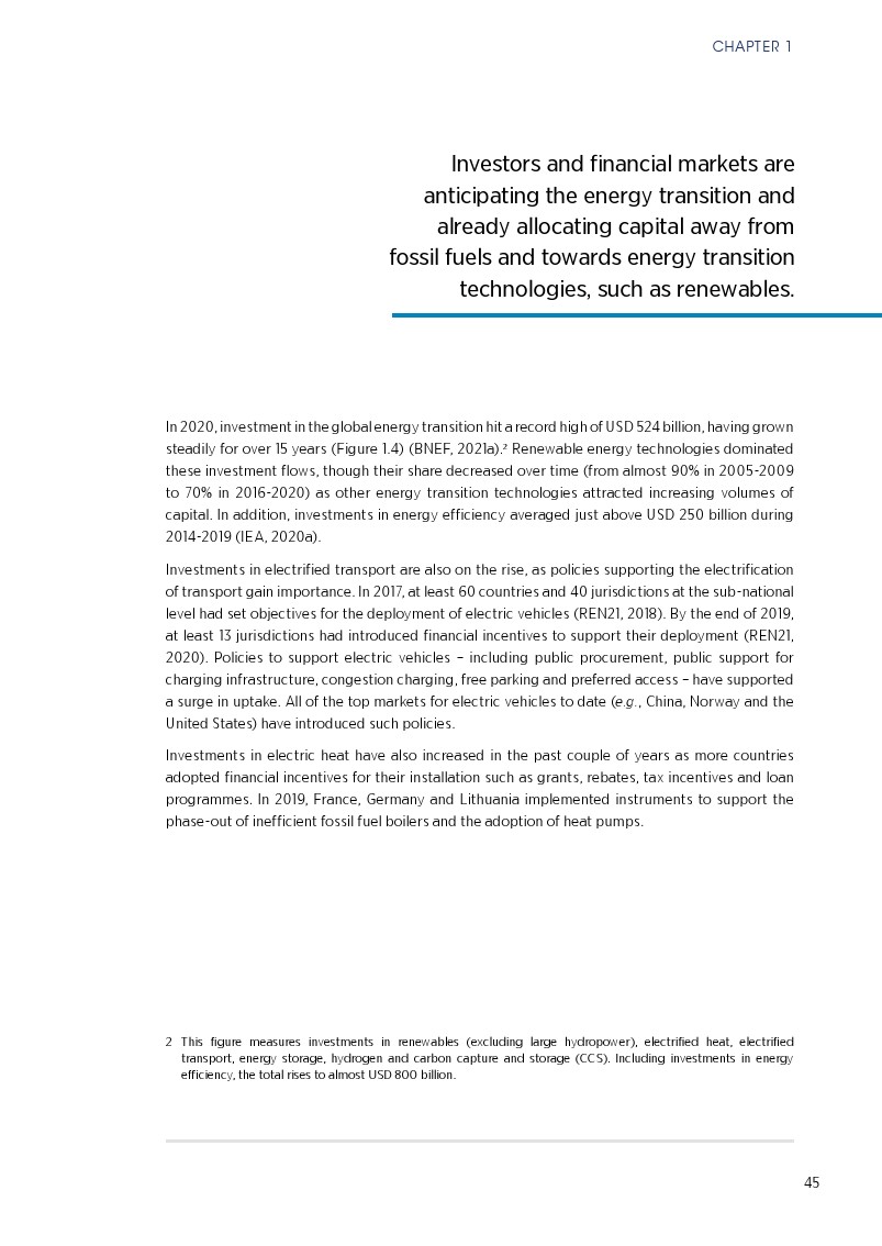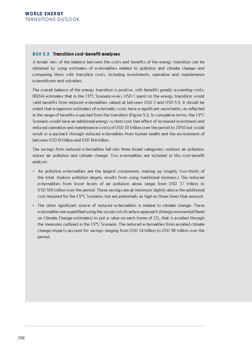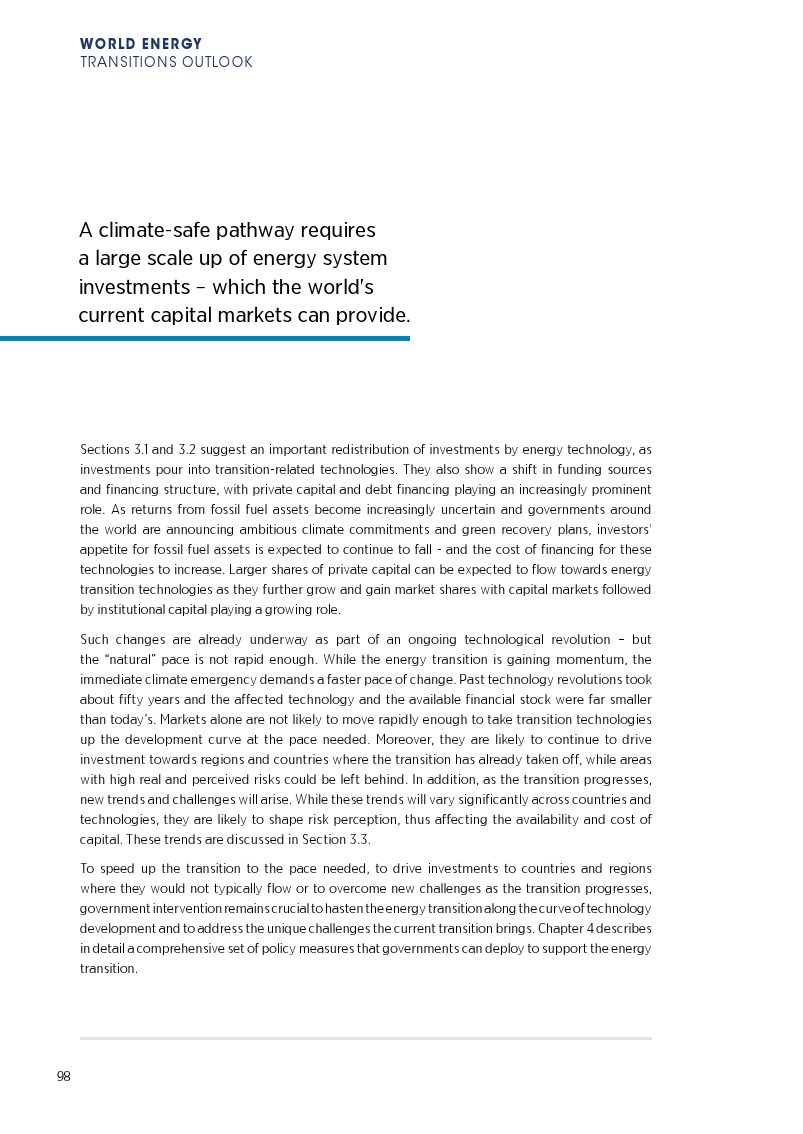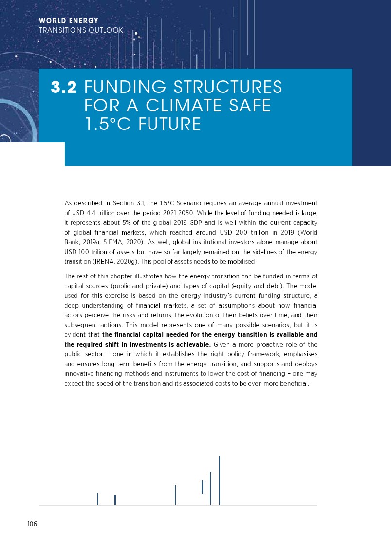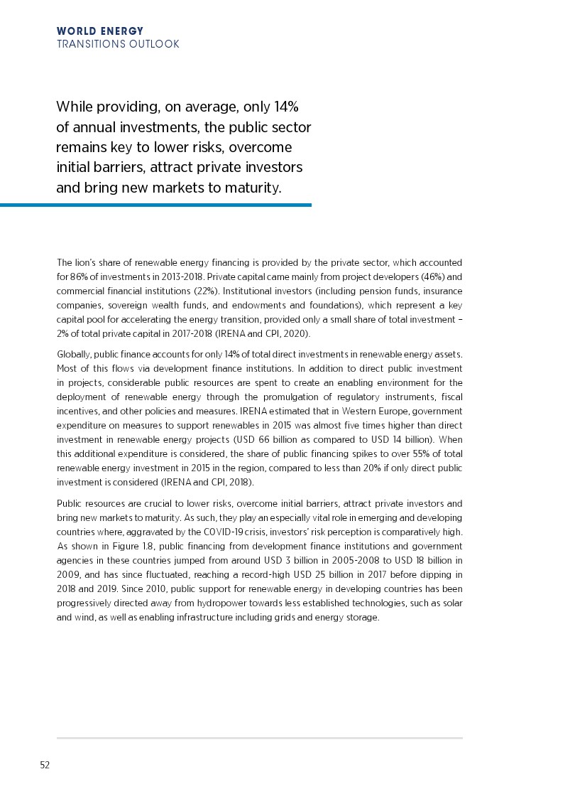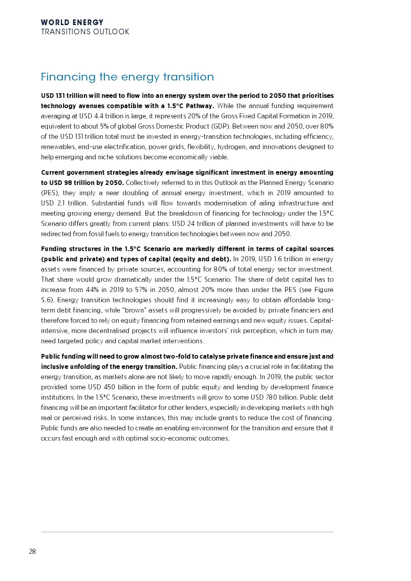 已经形成的共识是,以可再生能源和技术为基础的能源转型能够提高效率,是让我们有机会到 2050 年将全球变暖限制在 1.5°C 的唯一途径。就在几年前,IRENA所倡导的可再生能源方法还被认为是理想主义的。现在,即使是一些最保守的能源参与者也意识到这是一个气候安全世界的唯一现实的选择。这种深刻而普遍的观念转变源于不可否认的证据,包括十多年来重塑能源行业的技术、政策和市场趋势。