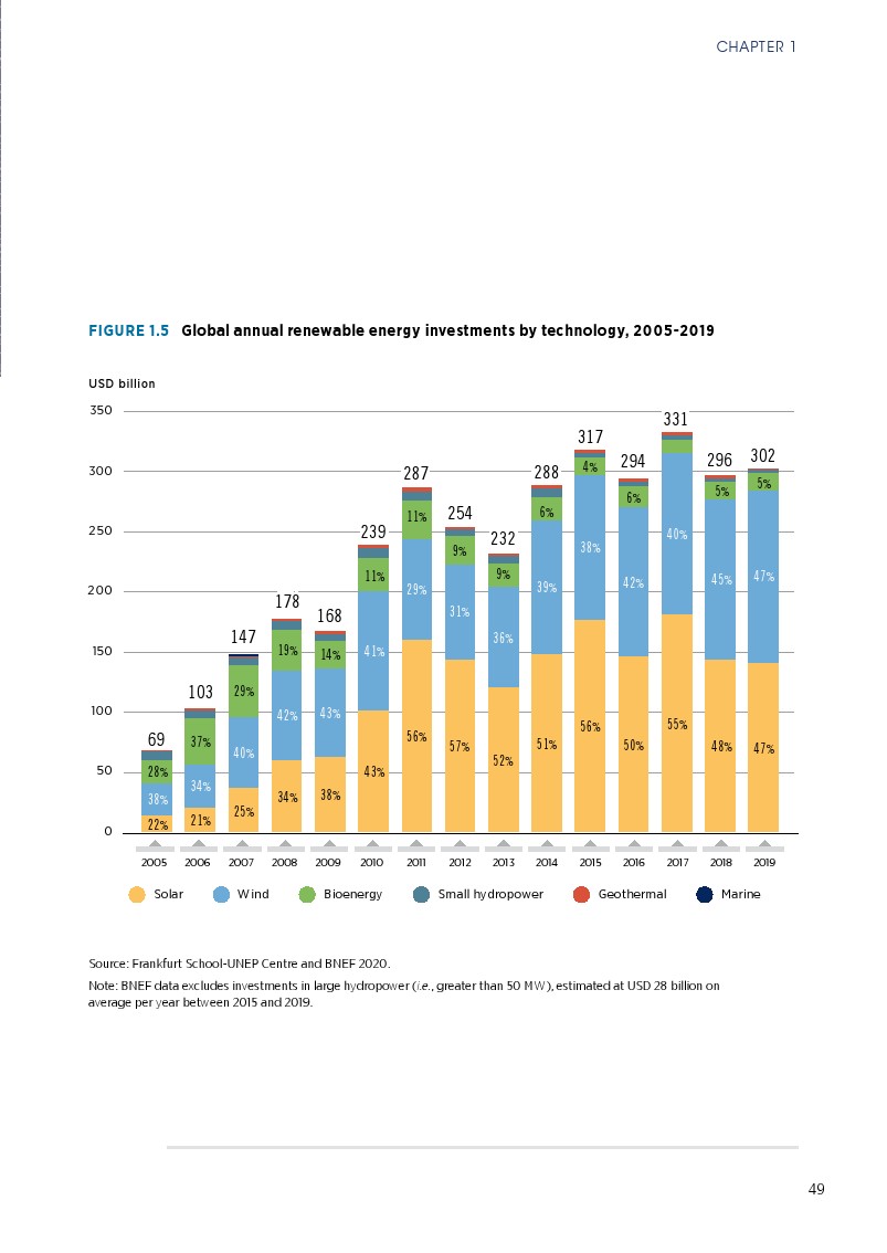 在过去的七年,每年向电网添加的可再生能源比化石燃料和核能的总和还要多。可再生能源技术现在在全球新发电容量市场占据主导地位,因为它们已成为许多地区最便宜的电力来源。