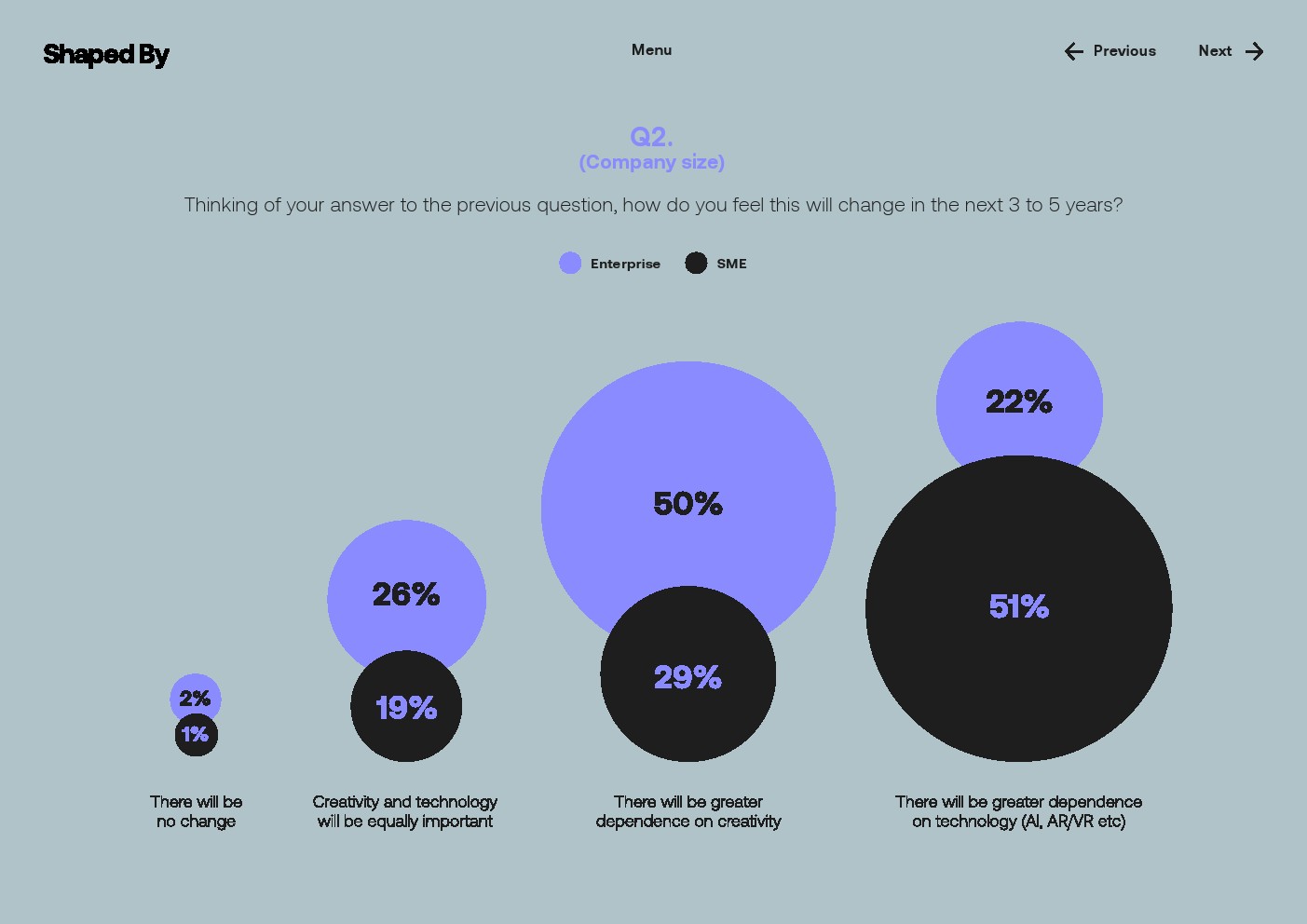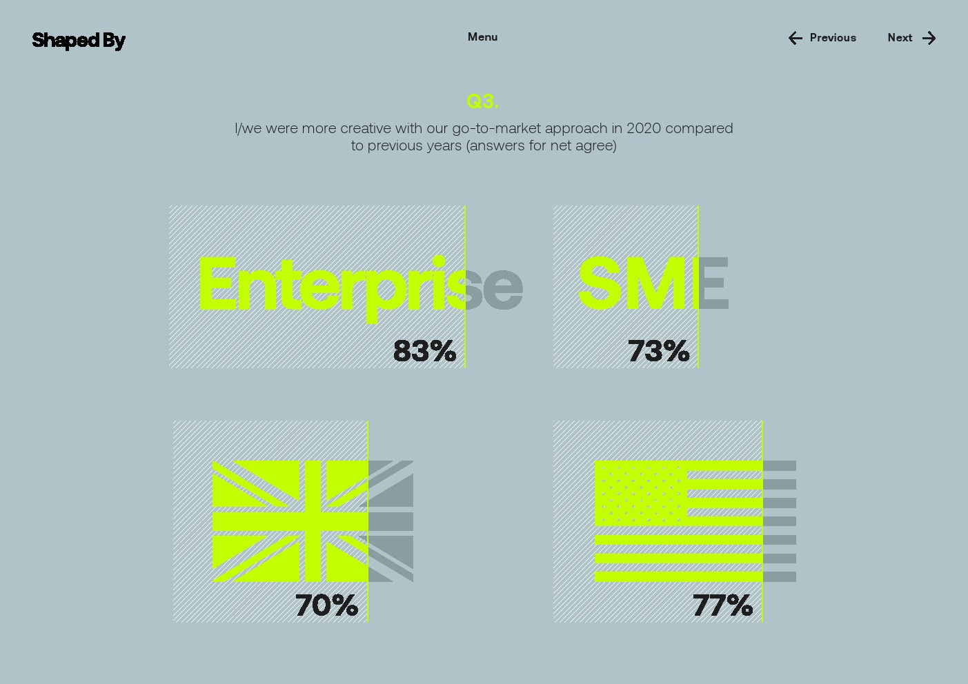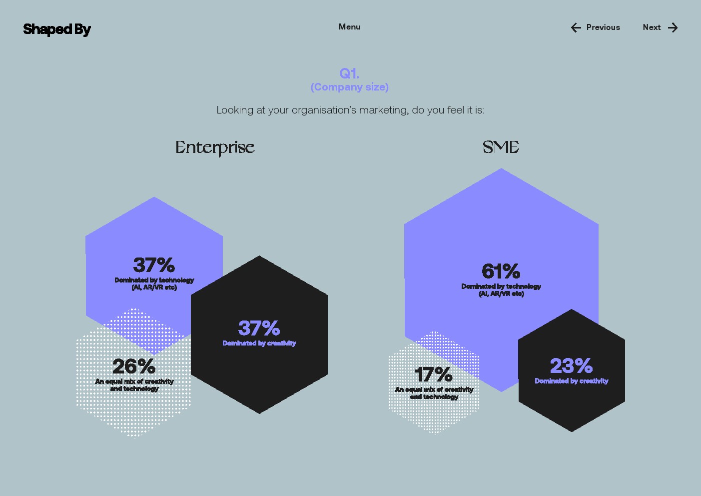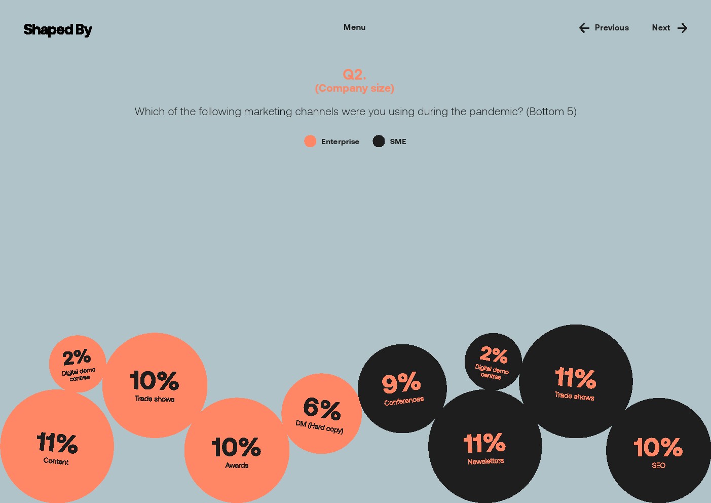 这些优先权的转移可能与去年受众行为的变化有关。企业和中小型企业(SME)营销人员都表示,他们看到了受众对广告和内容反应的差异(61%的企业;中小企业的50%)。这两个群体中相当大的一部分人也表示,他们获得潜在客户的能力有所提高(72%;49%),以及他们转换潜在客户的能力(57%;55%)。约2/3的企业营销人员表示,他们看到了订阅或产品续订量的提高,44%的中小企业也看到了同样的情况。
