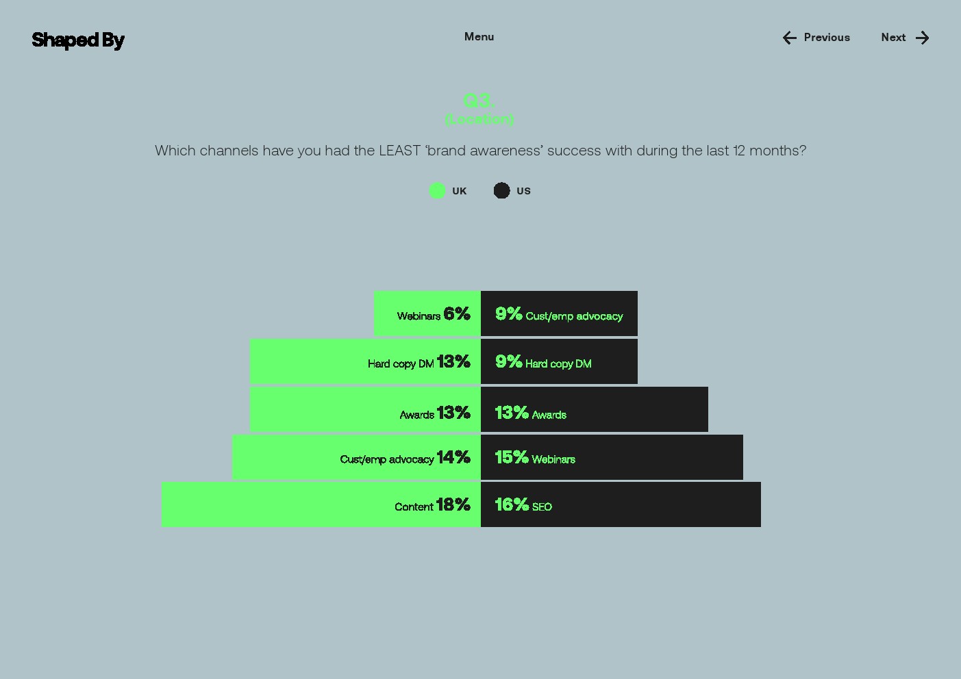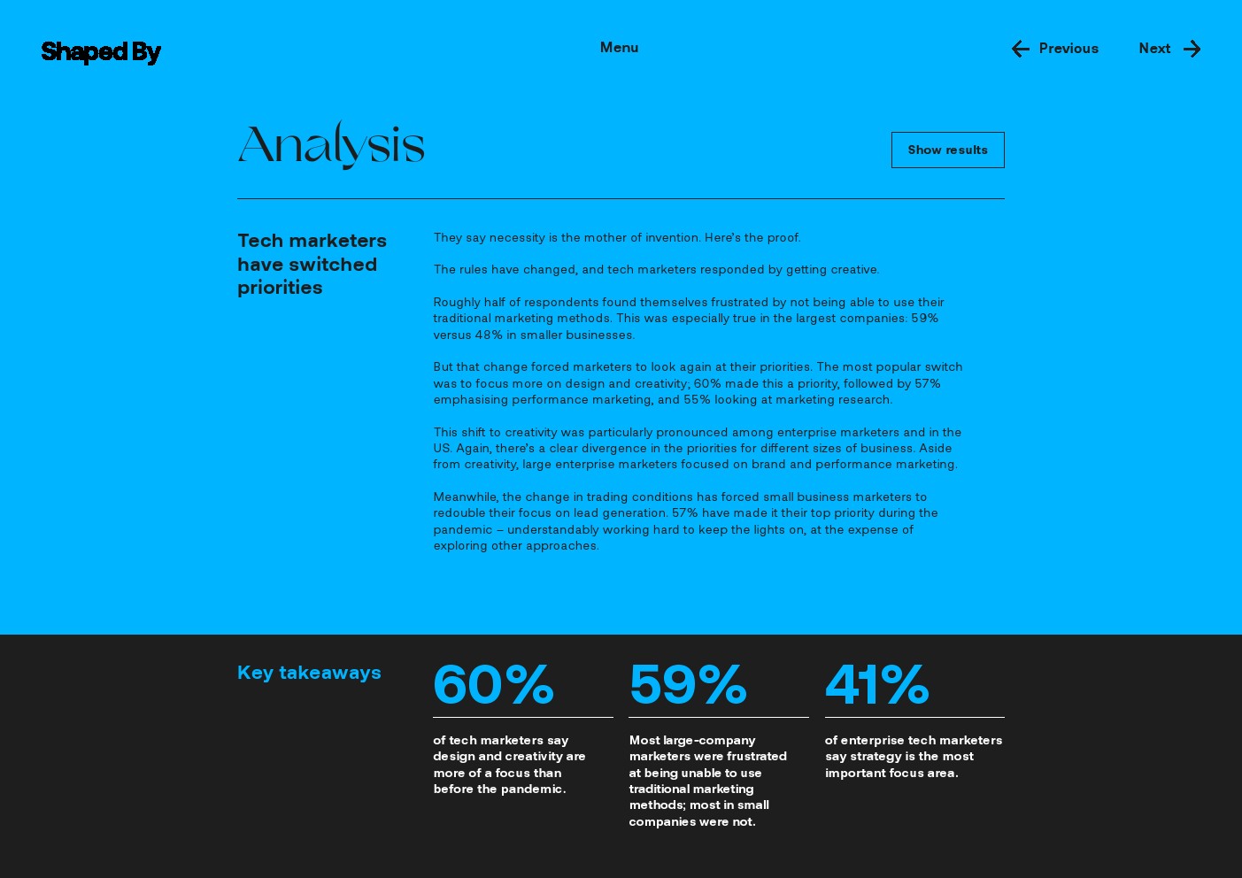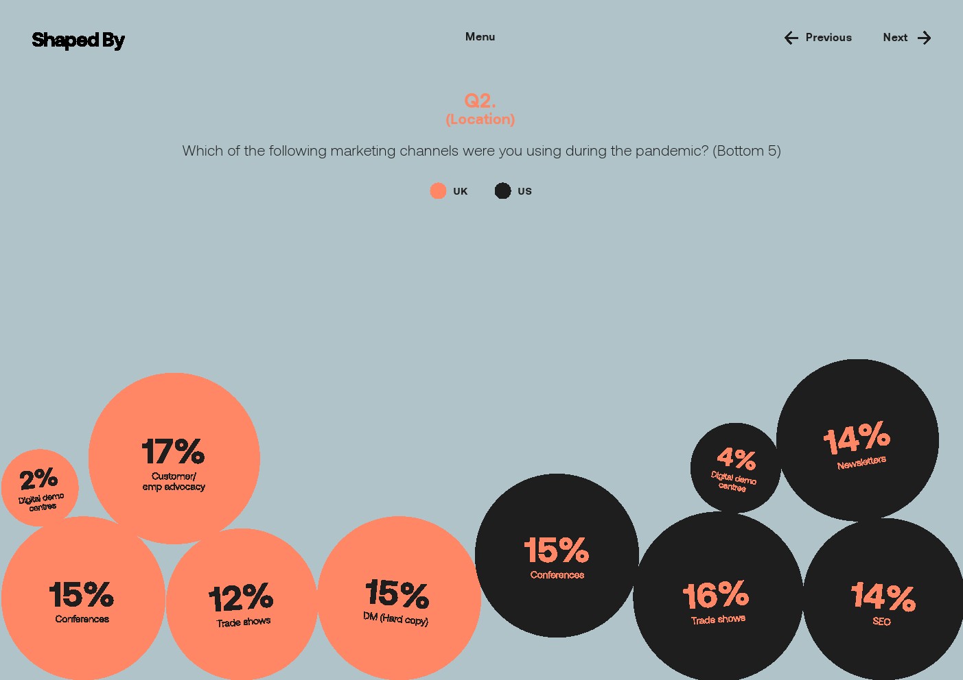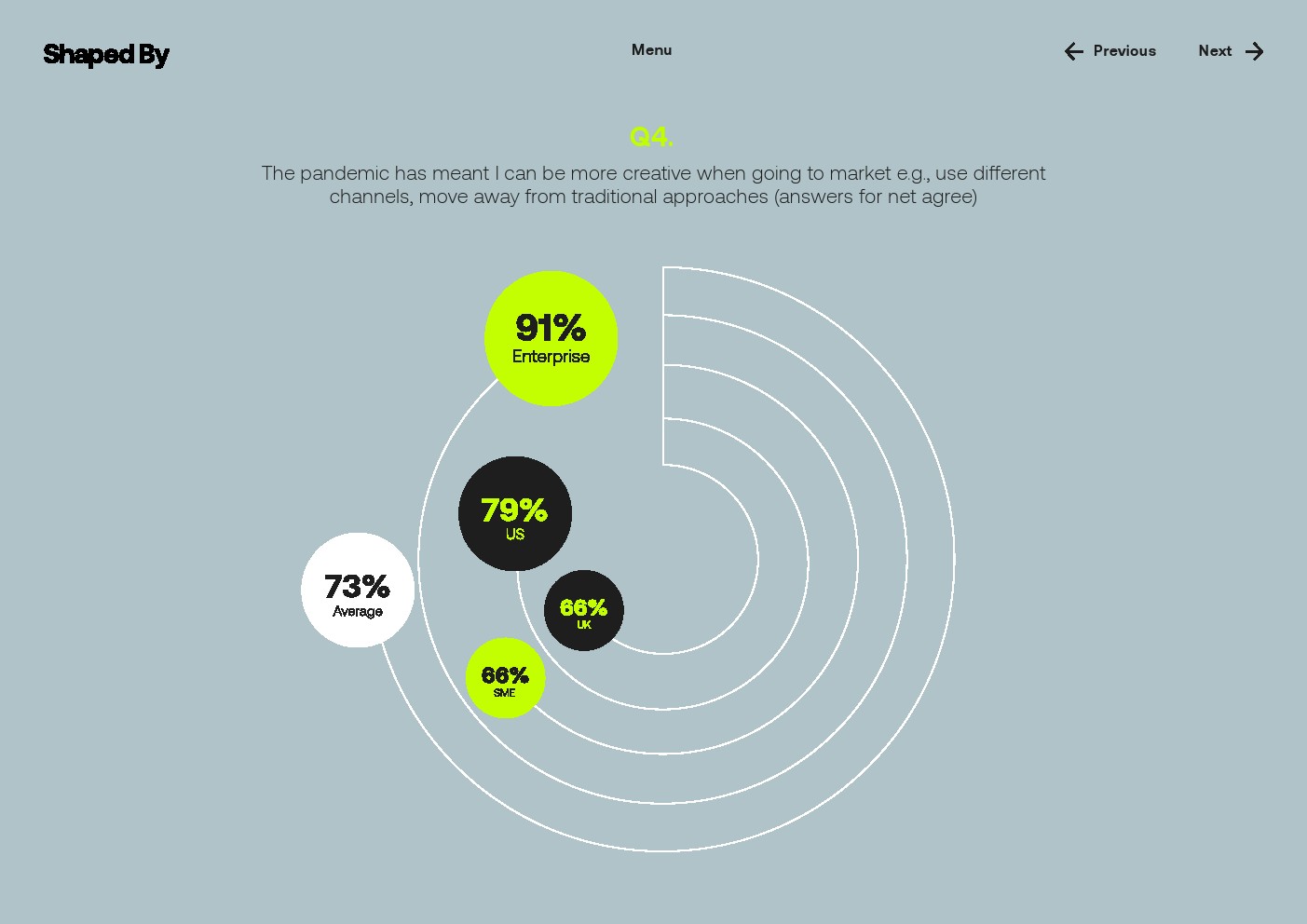 这项对来自美国和英国领先科技公司的200名营销人员的调查发现,在新冠大流行期间,美国科技营销人员不仅将重点更多地转向了绩效营销,而且许多人还将设计和创意(64%)、需求和潜在客户开发(60%)、品牌(56%)和市场研究(53%)作为重点。另有56%的受访者表示,自新冠大流行以来他们更加重视内部沟通。