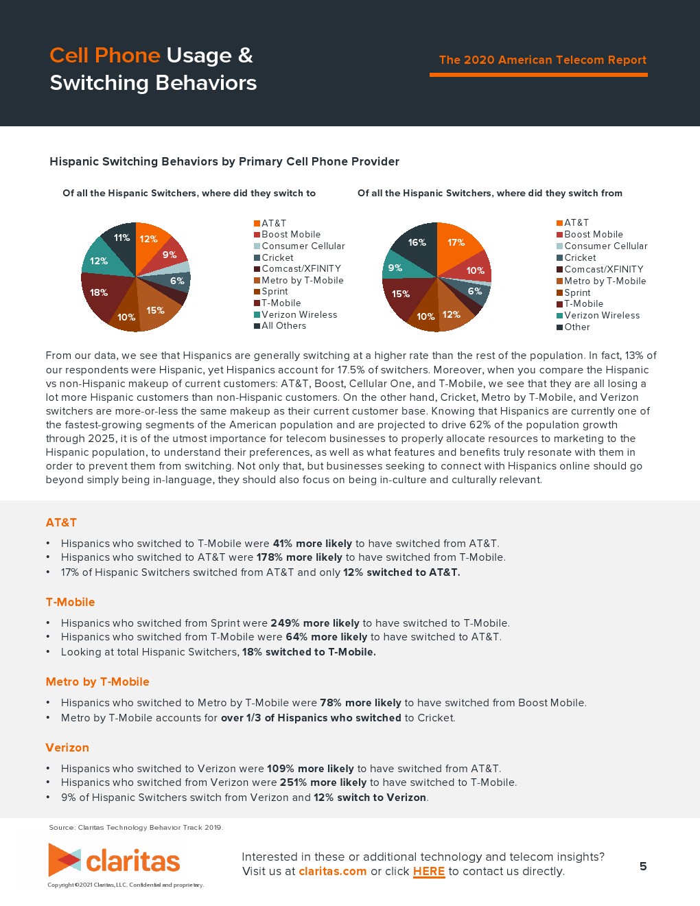 从数据来看,西班牙裔更换电信运营商的频率通常高于其他人群。调查中西班牙裔占受访者的13%,但他们却占更换运营商的美国人的17.5%。西班牙裔目前是美国人口中增长最快的族裔之一,预计到 2025 年将贡献62%的人口增长。