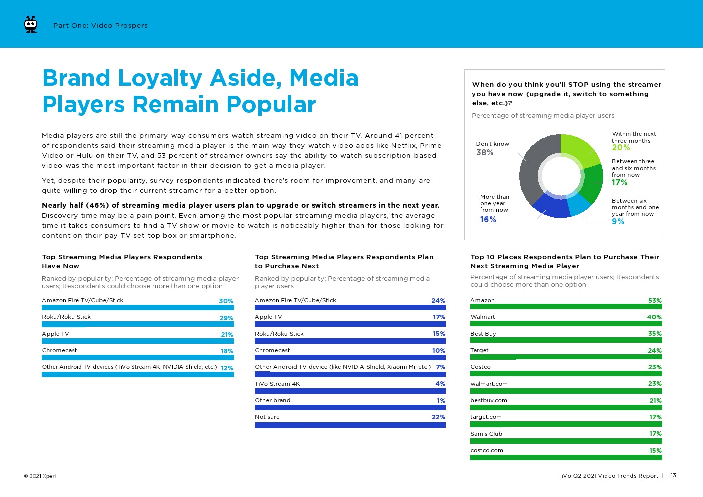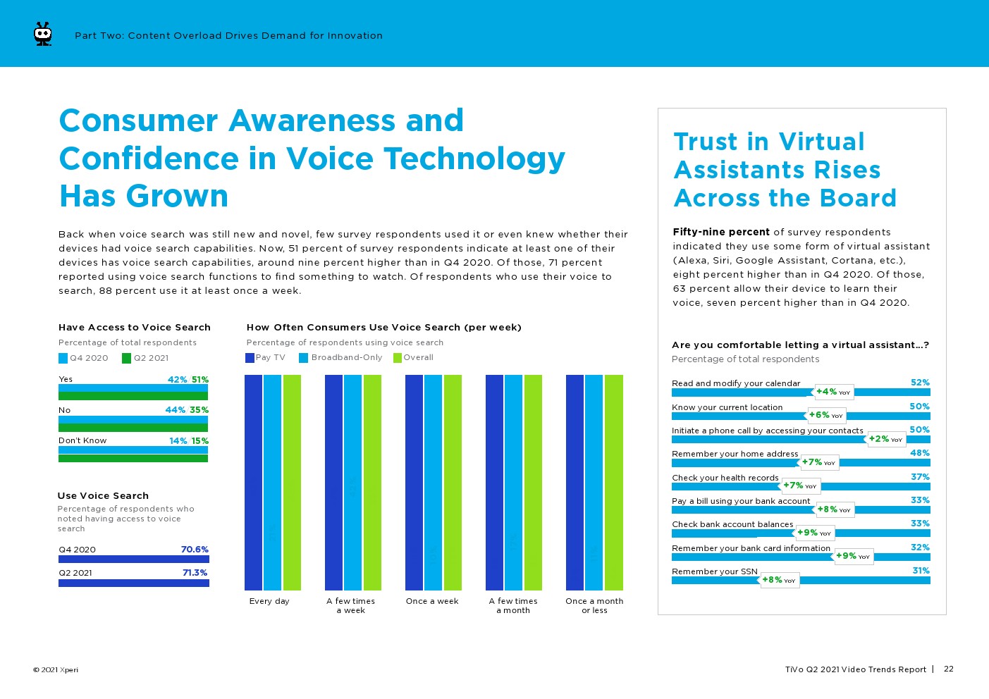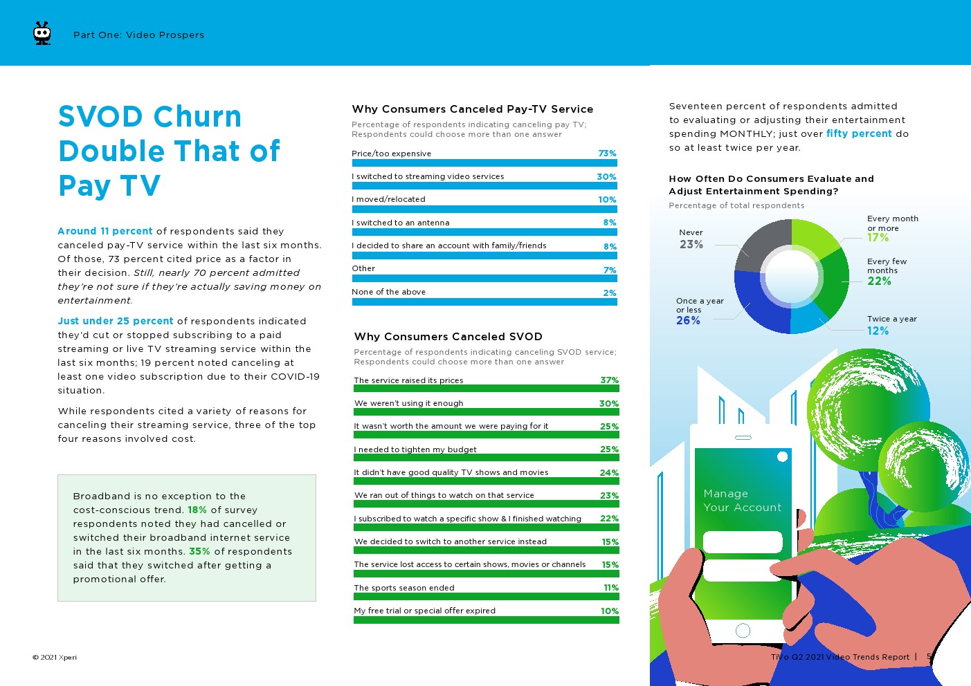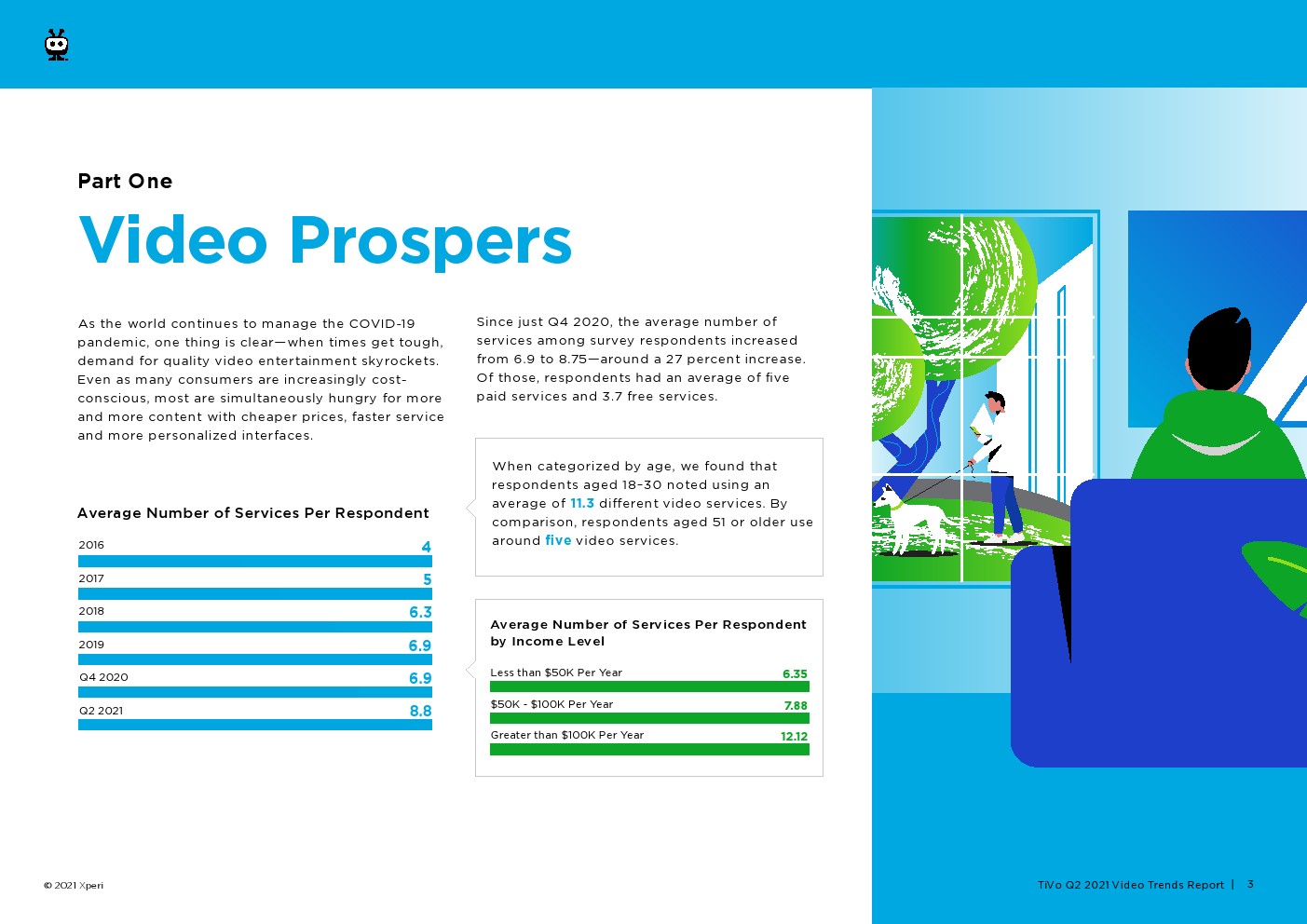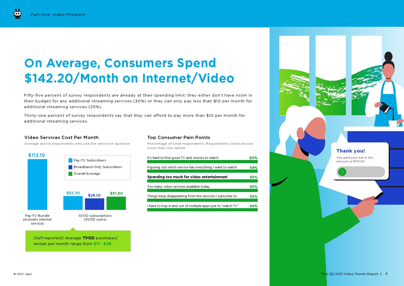 TiVo发布了“2021年第二季度视频报告”。无论是付费电视、付费流媒体视频点播服务还是广告支持的视频点播服务,人们都有很多选择来查找视频内容。TiVo第二季度的数据显示,6/10的来自美国和加拿大的成年人表示很难找到好的电视或电影。