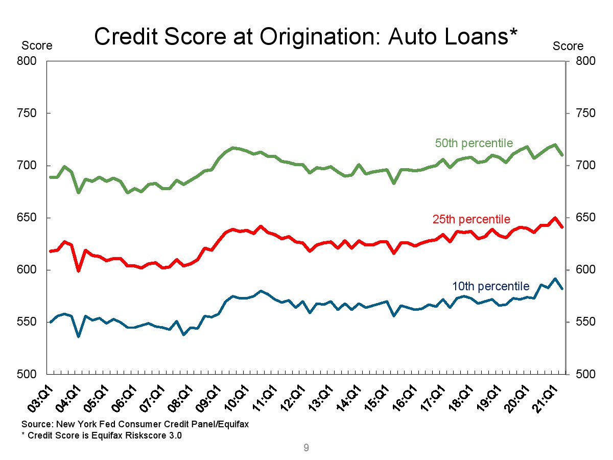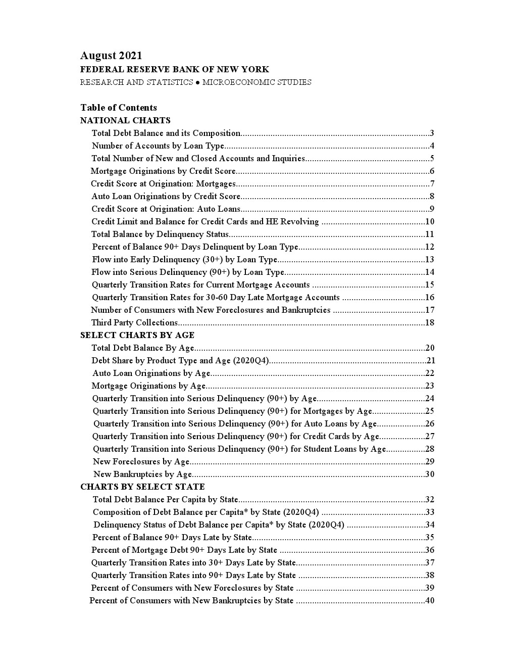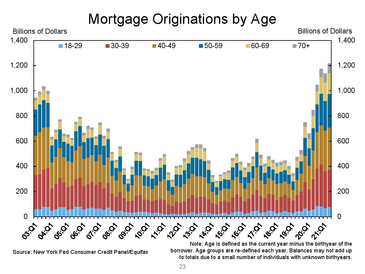 2021年第二季度,抵押贷款和汽车贷款的新分期付款信用额度均创下新高。抵押贷款发放额为1.2万亿美元,超过了前三个季度的数字。截至2021年第二季度的四个季度中,抵押贷款发放达到了历史最高水平,发放了近4.6万亿美元。由于过去四个季度发放贷款的步伐强劲,44%的未偿抵押贷款余额是在过去一年发放的。
