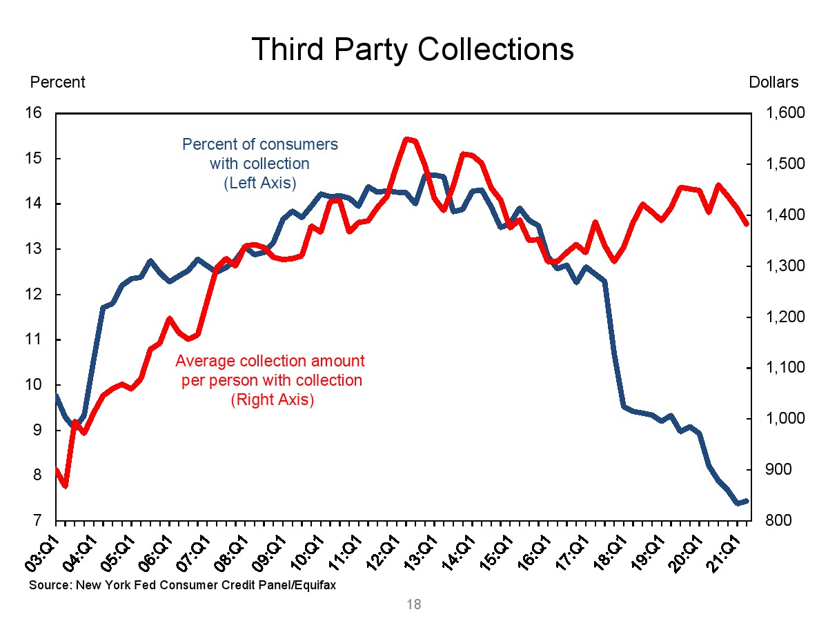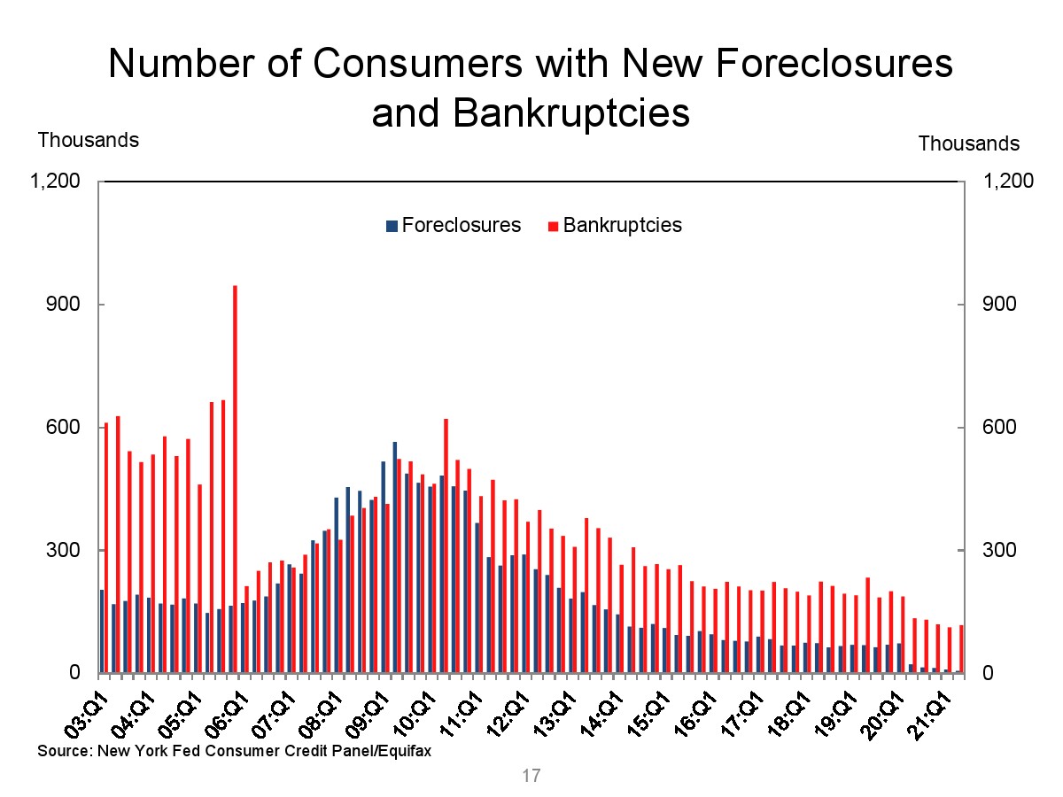 2021年第二季度,约有119000名消费者的信用报告中增加了破产标志,较上一季度略有上升,但接近历史低点。