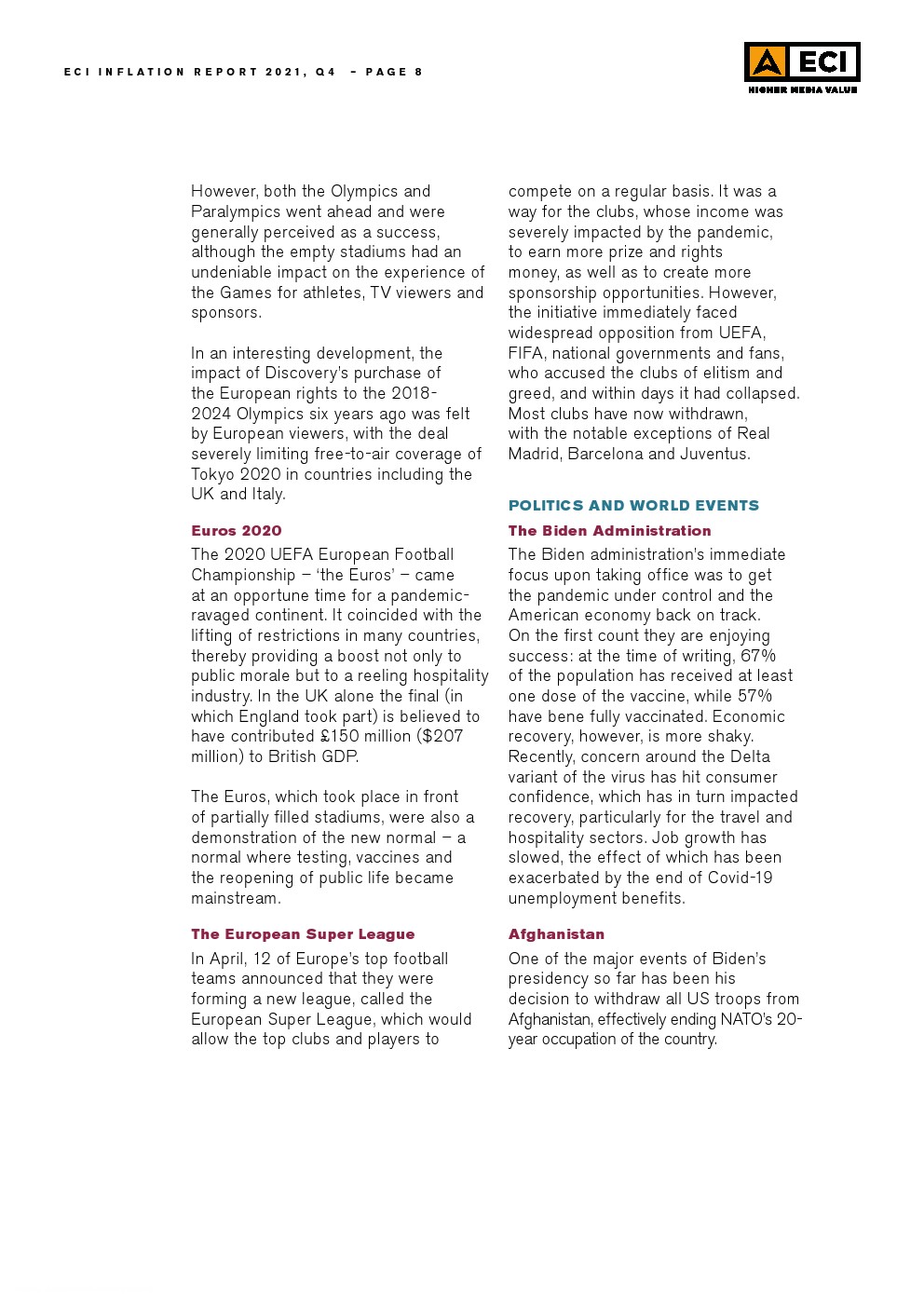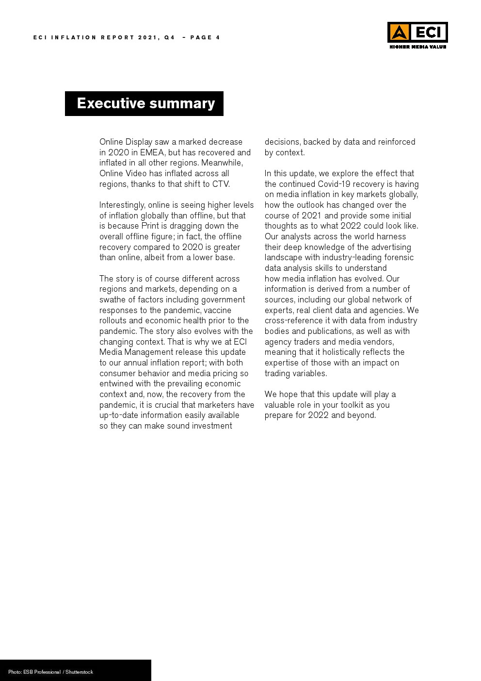 ECI Media Management发布了“2021年第四季度通货膨胀报告”。全球媒体价格今年将平均上涨4%,略高于年初预测的3%。