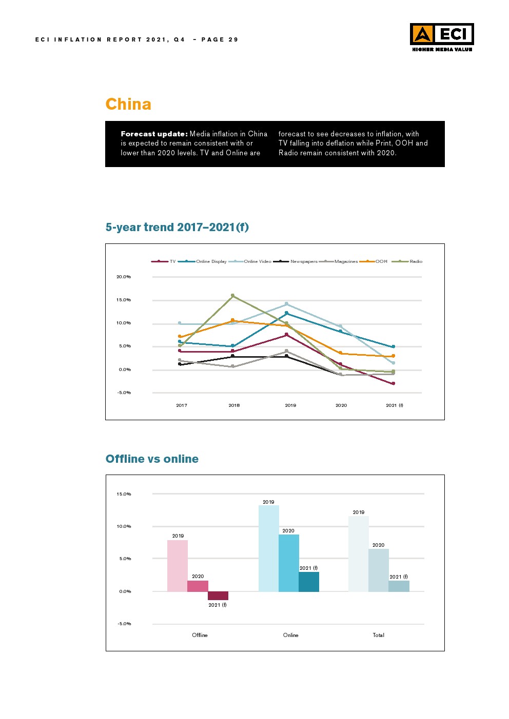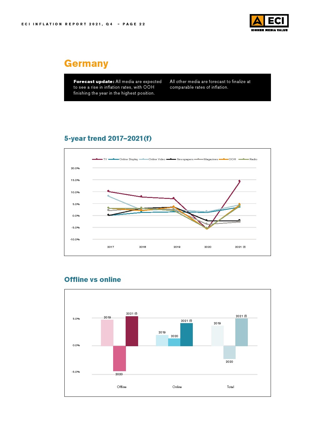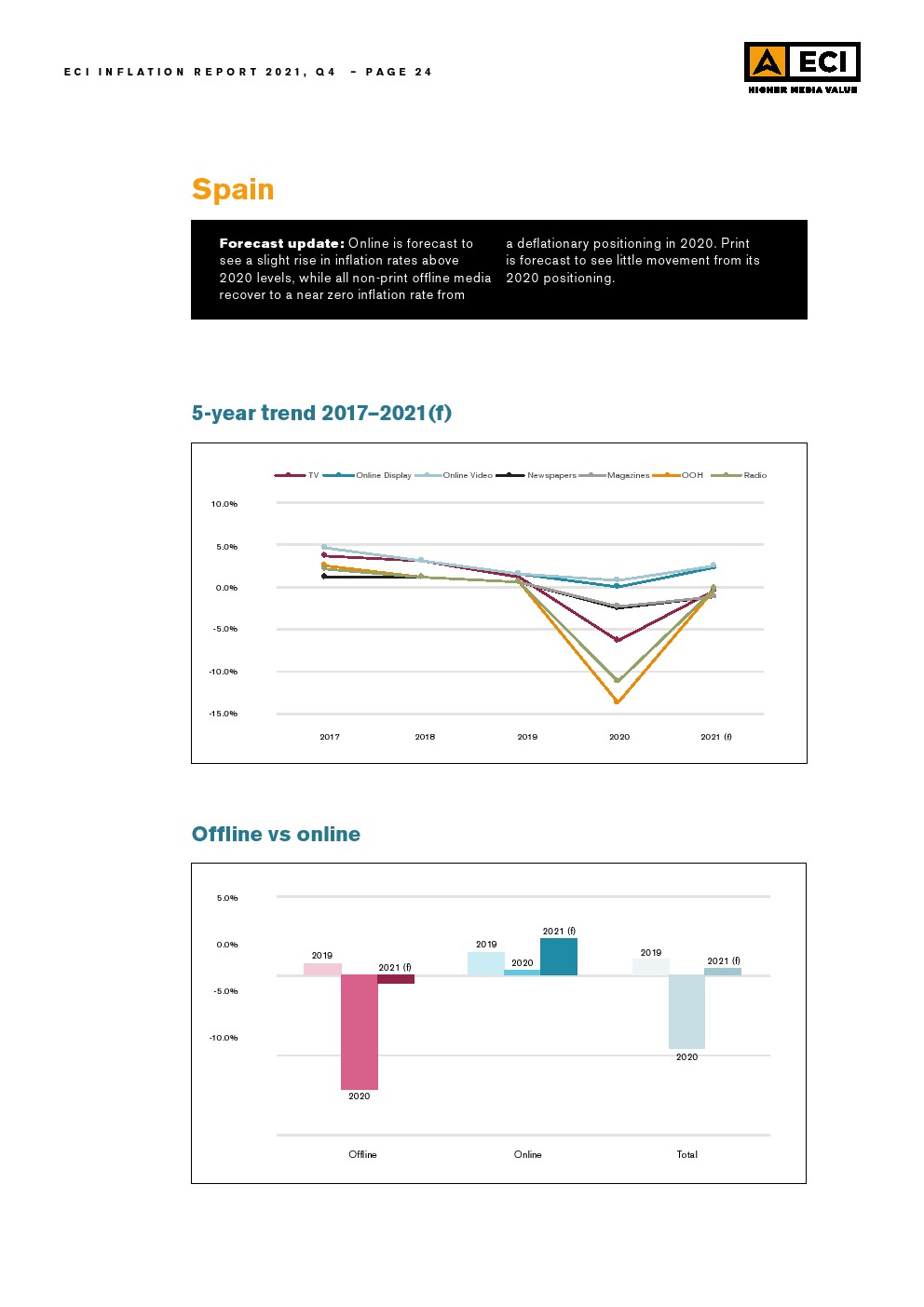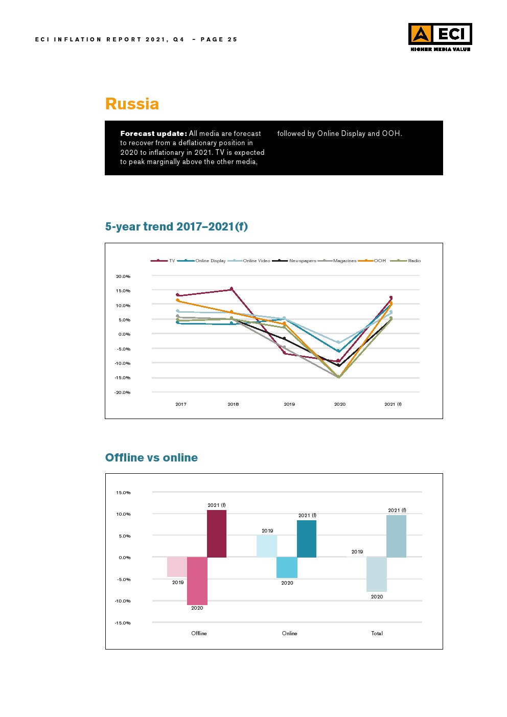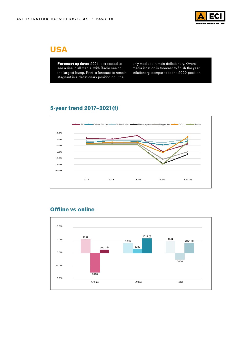 考虑到今年北美媒体价格的上涨,ECI预测总计上涨3.8%,数字媒体价格上涨5.6%。与此同时,北美的线下媒体通胀估计为5.6%。ECI预计整体媒体价格将从2020年的水平恢复,并预计明年将进一步增长。