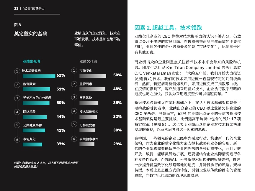 我们发现了一些令人意外的结果,它们不仅反映新时代的空前巨变,还揭示了很多新的优先任务和新的关注领域。无论是日益受到青睐的远程工作,还是不断加速的技术采用步伐,都表明过去的主流实践与未来的需求相去甚远。