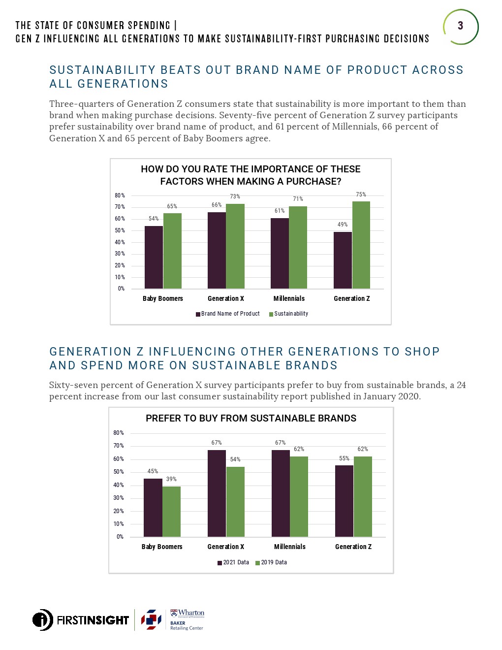 宾夕法尼亚大学沃顿商学院的 First Insight 和贝克零售中心于2021 年 7 月调查1000 多名美国消费者,希望了解关于可持续实践如何影响购物习惯和购买决策。调查结果表明,越来越多的消费者采用可持续采购。有趣的是Z 世代似乎在影响其他世代实现可持续购买的发展。