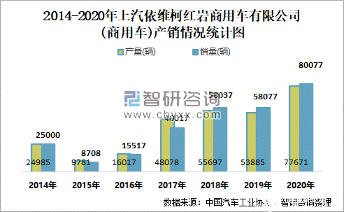 但奇迹出现了,2020年上汽红岩销量80077辆,同比增幅37.88%。2021年1月上汽依维柯红岩商用车有限公司(商用车)产量为9024辆,同比增长110.01%,销量为9021辆,同比增长125.13%。也就说,如今的上汽红岩一个月的销量比2015年上汽依维柯红岩一年的销量都多。