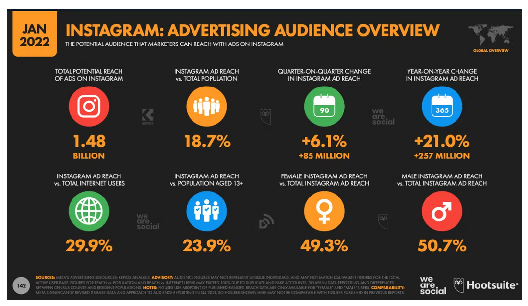2022年 Instagram 广告潜在覆盖面达18亿人