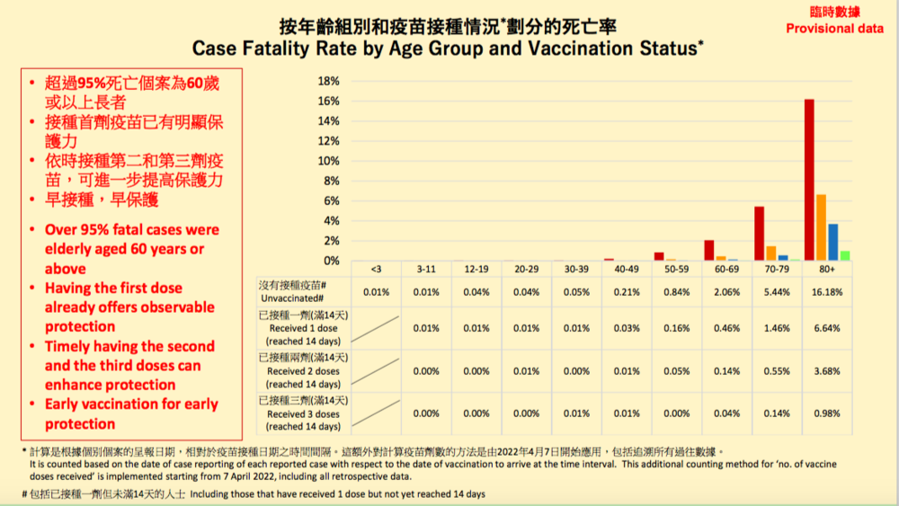 最危险的80岁以上人群,在香港三针接种率不到20%;另据4月12日发布会,中国大陆地区第三针疫苗的接种率也不到20%——约为19.7%。
