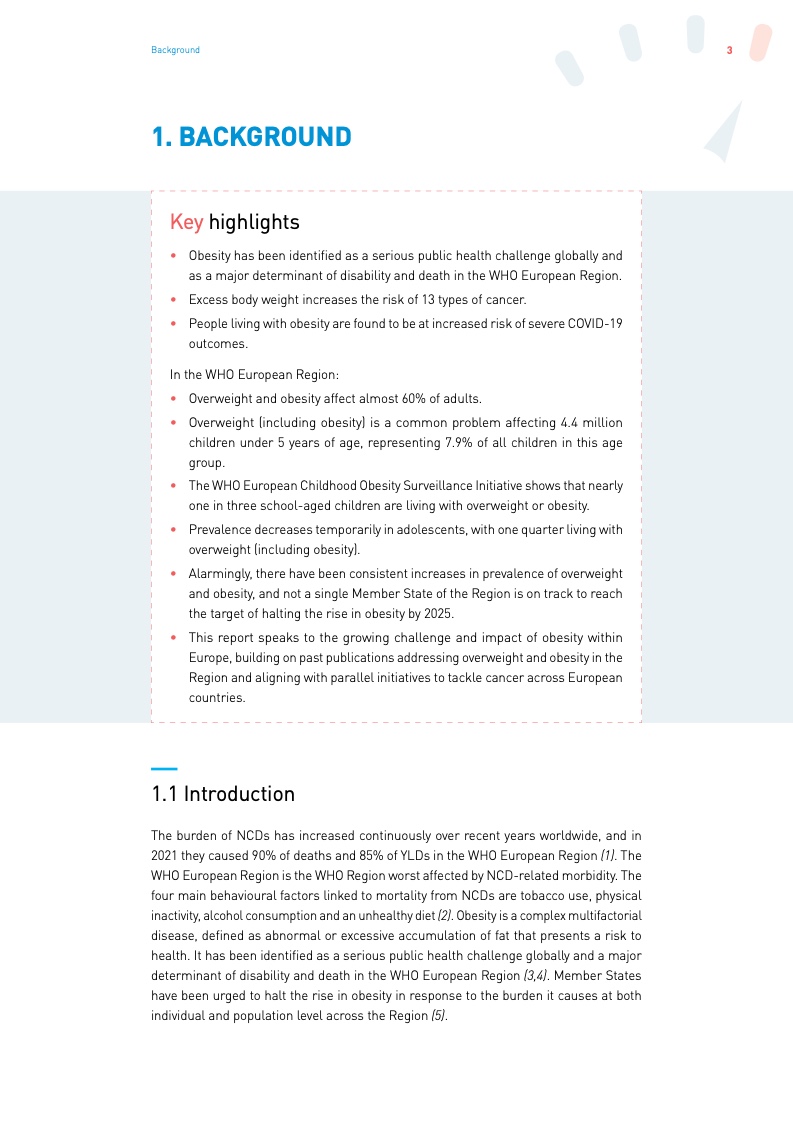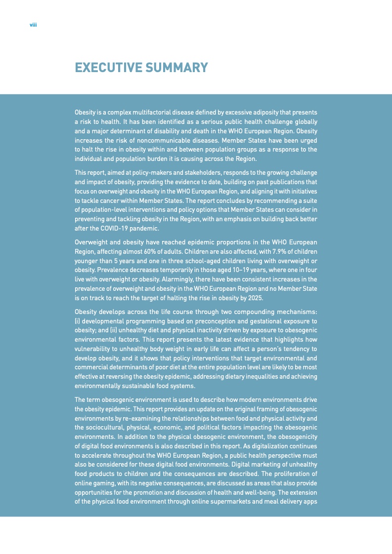 《2022年欧洲区域肥胖报告》显示,在世卫组织欧洲区域,近三分之二的成人和三分之一的儿童超重或肥胖,并且比率仍在上升。报告指出,肥胖是该地区死亡和残疾的首要决定因素之一。