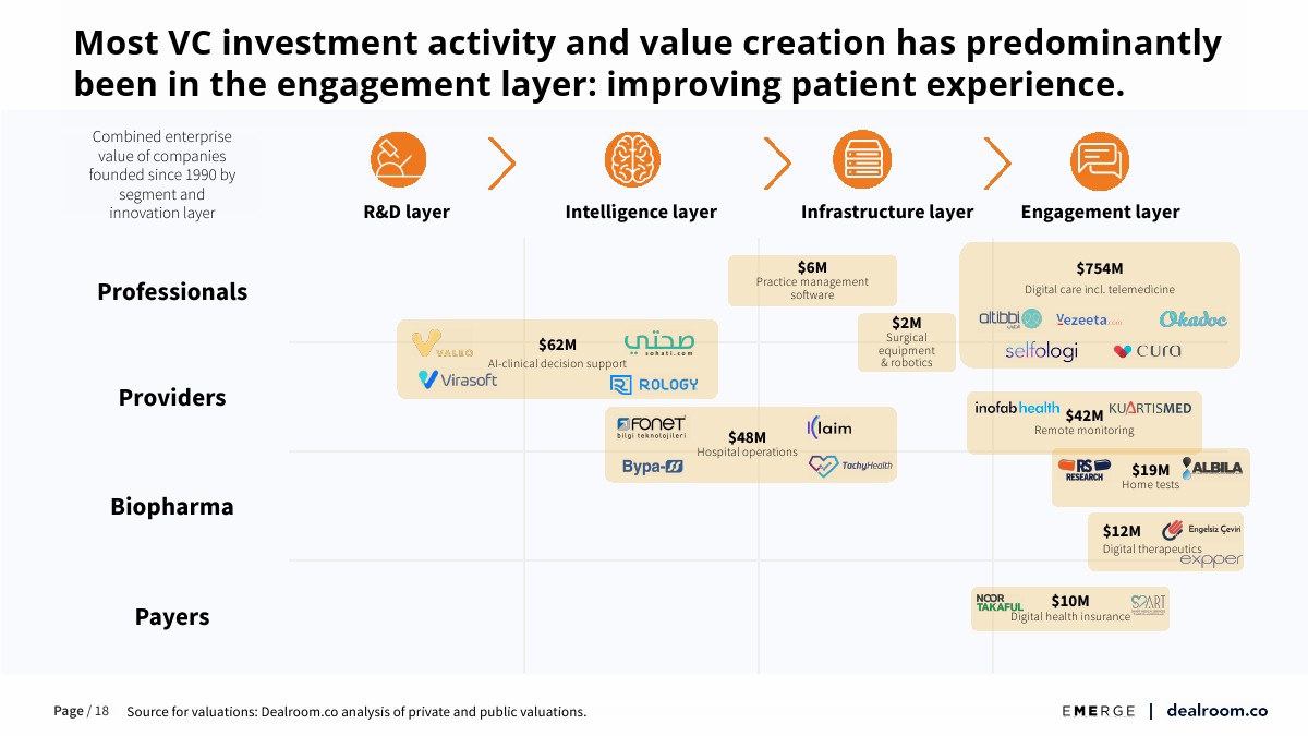 大多数风险投资活动和价值创造主要集中在参与层:改善患者体验。