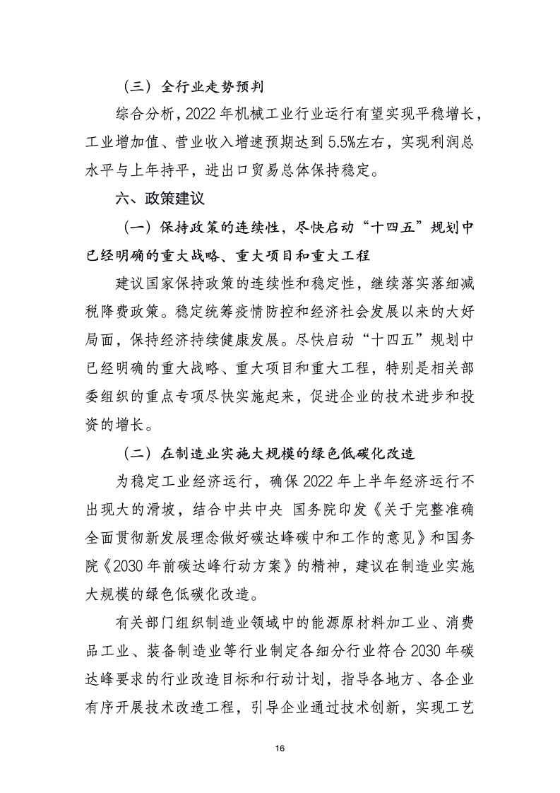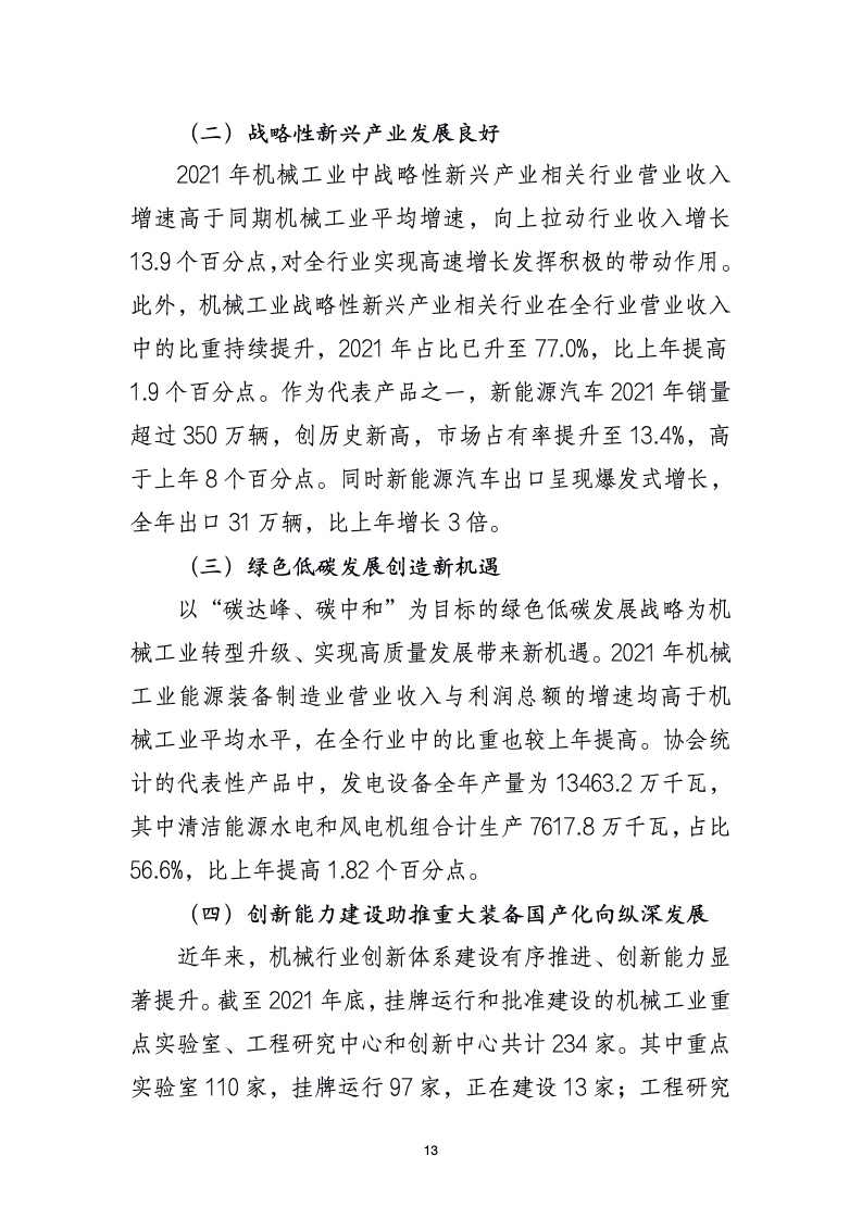 国家统计局数据显示,2021 年规模以上机械工业实现营业收入比上年增长 15.6%,比 2019 年增长 20.8%,两年平均增长 9.9%;实现利润总额比上年增长 11.6%,比 2019 年增长23.3%,两年平均增长 11%。但与全国规模以上工业相比,2021年机械工业营业收入和利润总额增速均低于全国规模以上工业平均水平;从两年平均增速看,营业收入增速高于全国规模以上工业增速,利润总额增速低于全国规模以上工业增速。